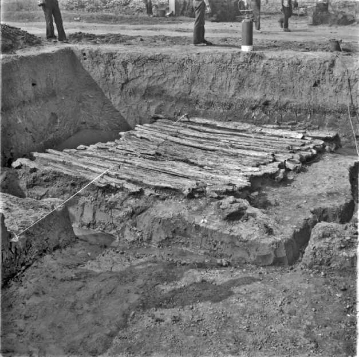 Istoria descoperirii din adâncuri este încă şi mai fascinantă. În anul 1952, un grup de muncitori a fost trimis să sape, la Lozna, după turbă. În acele timpuri, acest cărbune inferior – rezultat prin descompunerea resturilor vegetale – era o resursă importantă, fiind folosită mai ales ca îngrăşământ agricol. De-a lungul unui pârâu, oamenii au trasat pe mijlocul mlaştinii un canal colector pentru drenarea apelor. În acel moment, muncitorii au dat peste o serie de vechi construcţii din lemn, înghiţite de mlaştină şi conservate perfect în acest mediu anaerob. Odată cu scoaterea lor, în contact cu aerul, multe dintre ele s-au distrus.