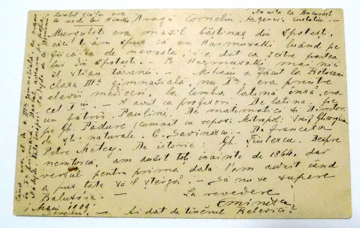 Reprezentative pentru Botoșani și prețioase prin informația pe care o conțin despre tatăl poetului, Gheorghe Eminovici, și despre Ipotești sunt scrisorile lui Grigore şi Teodor Goilav și scrisoarea doctorului Hynek. Dacă de la Goilavi reținem o pitorească descriere a Ipoteștilor, din scrisoarea doctorului Hynek desprindem figura căminarului: „Era un un om cu ochi căprui, înalt, robust, cu obrazul rumen purtând numai mustăţi, totdeauna îngrijit îmbrăcat. Vioi, spirit mişcător. avea un strașnic talent de imitaţie a vocei şi a mişcărilor: imita pe cepelegi, pe gângavi, pe boerii cu tabieturi şi alte asemenea cu o extremă iscusinţă. Avea o memorie fenomenală. Cunoştea la perfecție și în toate amănunţimile viaţa oamenilor însemnaţi din ţara Moldovei (boeri şi boernaşi), din care o parte s’a scurs mai în urmă în Muntenia, împreună cu întreaga genealogie a neamului lor. Avea o colecţie mare de scrieri româneşti şi cunoştea adânc istoria ţărei. Avea darul vorbirei şi un aşa de mare talent de a povesti, că ai fi lăsat din mână cel mai interesant roman ca luni întregi să-l asculți. Avea un glas sonor, muzical şi vorbea o limbă românească atât de curată și aleasă, încât nu puteai să nu-l asculți. Cunoştea bine limbile: polonă, rusă şi ruteană şi vorbea binişor franţuzeşte şi nemţeşte”.