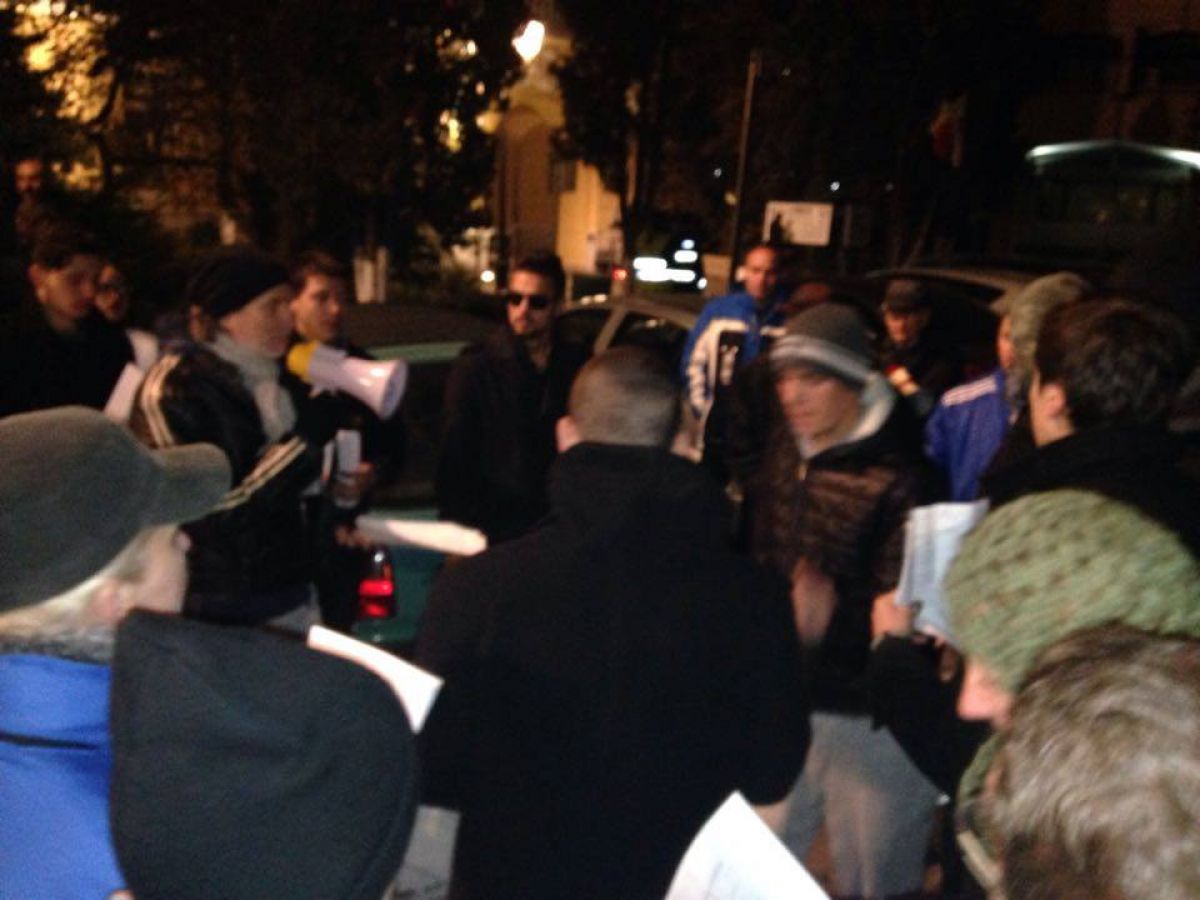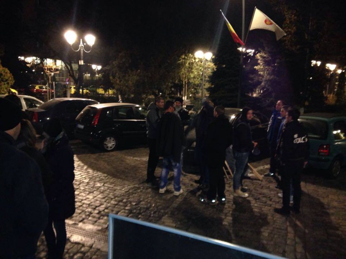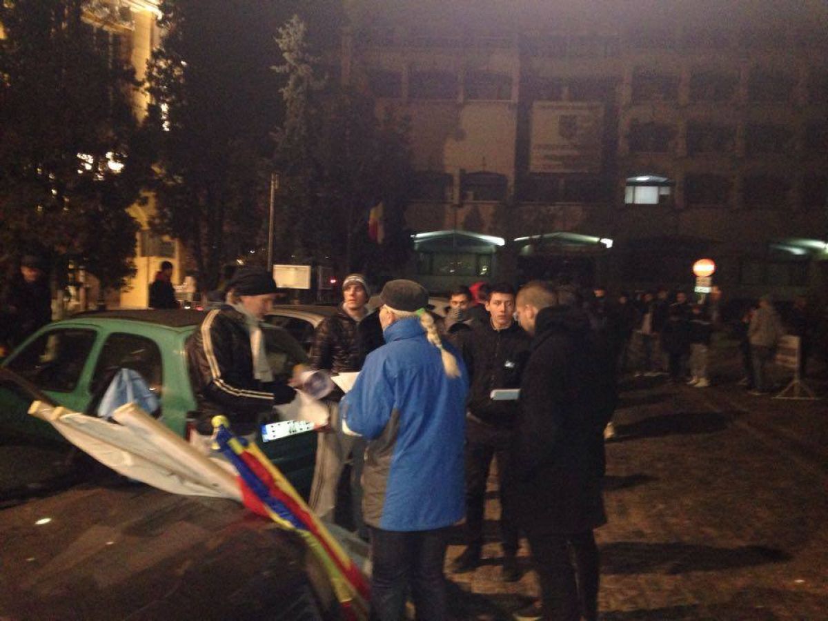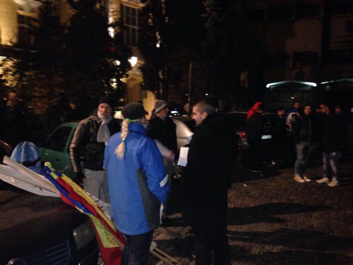 Strânși în Piața Revoluției, cu versurile scrise pe hârtii, manifestanții au cântat Deșteptă-te Române, Hora Unirii și Trec batalioane române Carpații. Au agitat tricolorul și s-au ajutat și de o portovoce. În jurul orei 20:00 au pronit din nou într-un marș prin oraș. (G.E.)