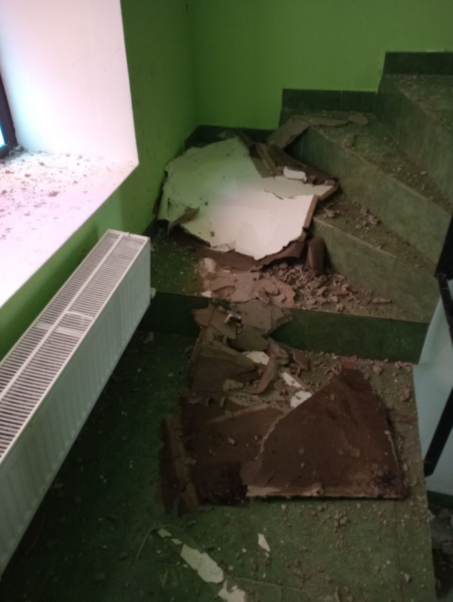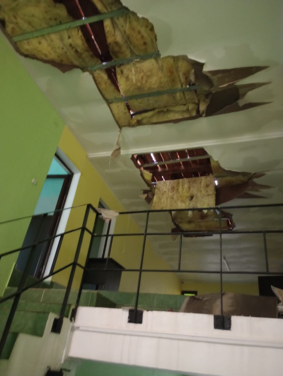 "Primăria este compromisă. Aşteptăm comisia de la judeţ ca să vedem dacă mai stăm aici sau ne mutăm în altă locaţie. Sediul Primăriei e cel mai afectat. Aici a venit vârtejul acela cel mai puternic şi a luat acoperişul. Am vreo cinci încăperi distruse. A căzut tavanul",