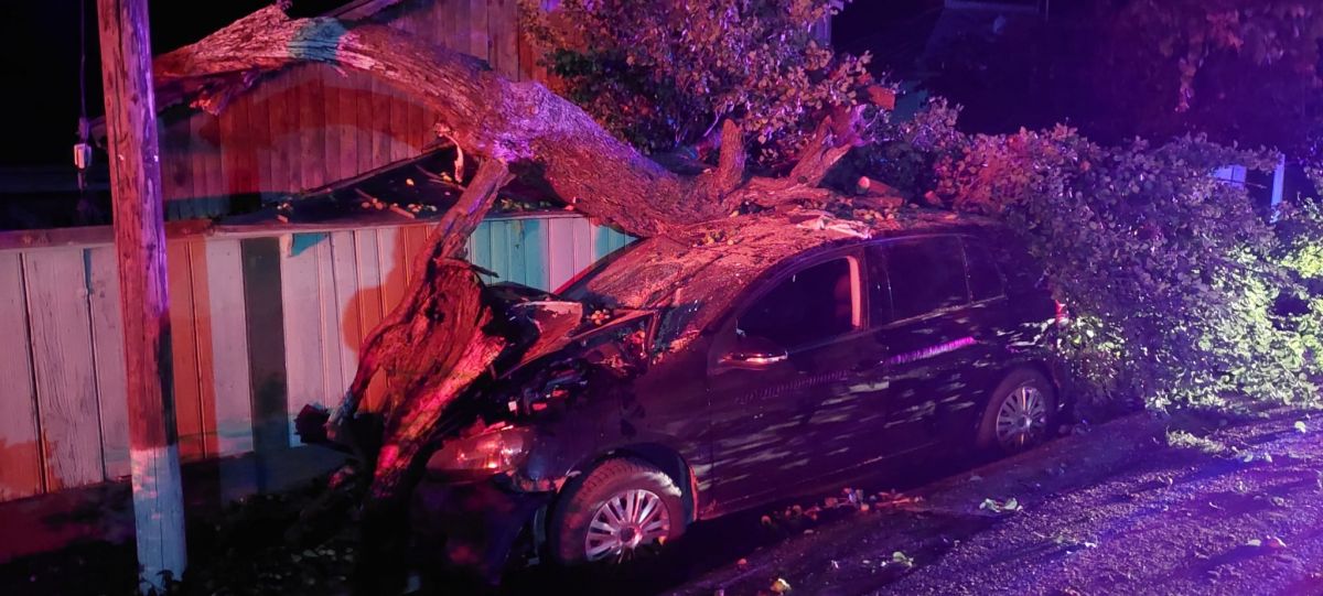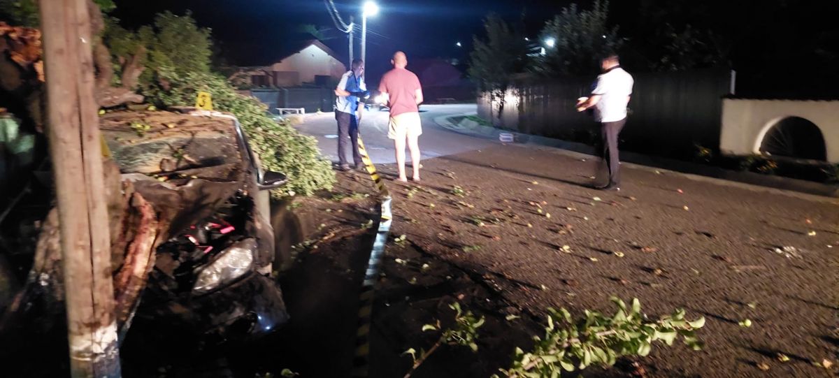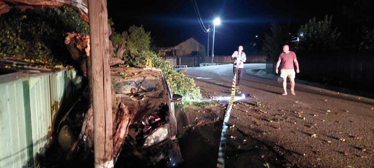Tânărul a pierdut controlul asupra volanului, iar mașina s-a izbit într-un cap de pod, apoi într-un copac care s-a prăbușit peste autoturism.