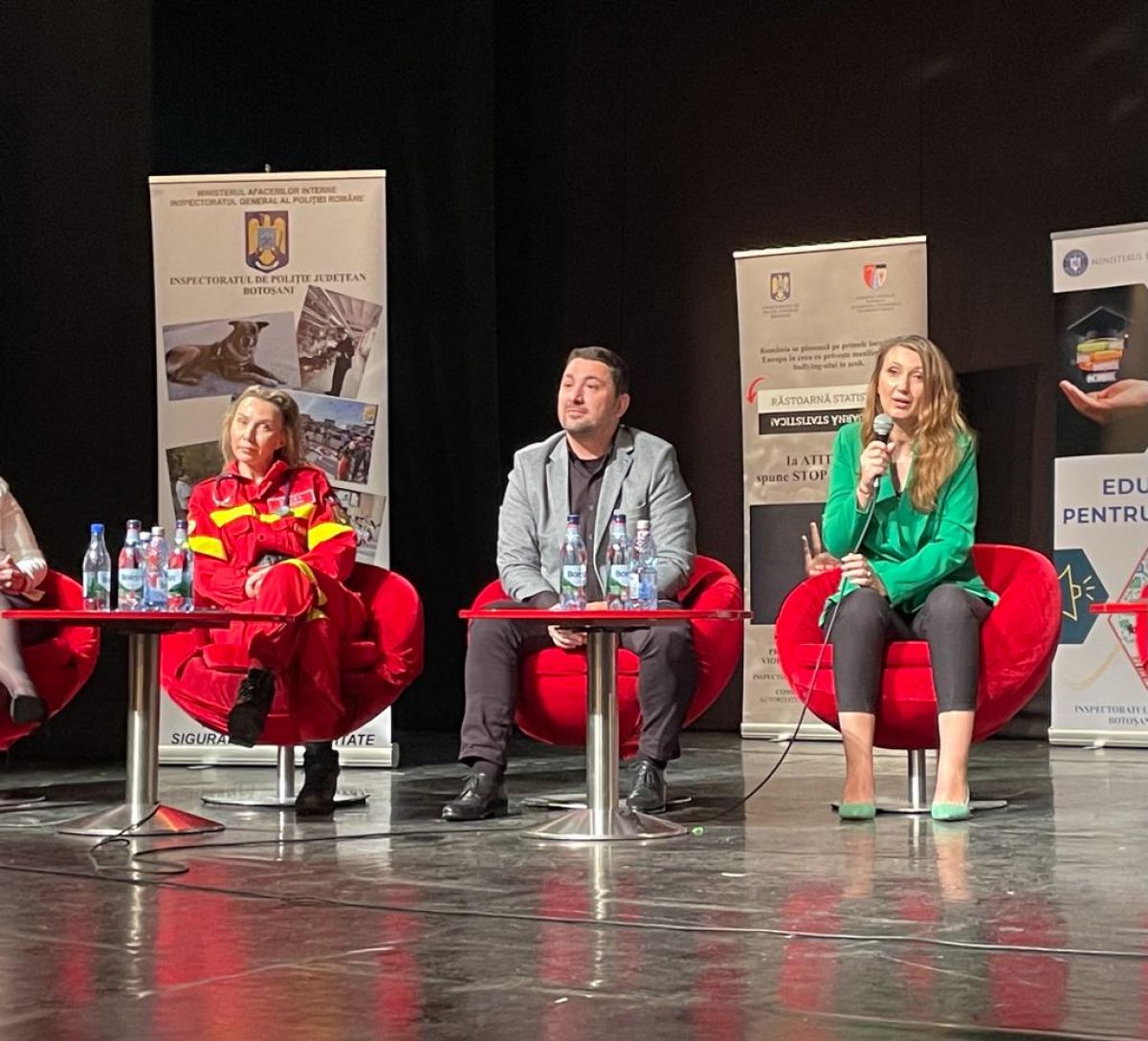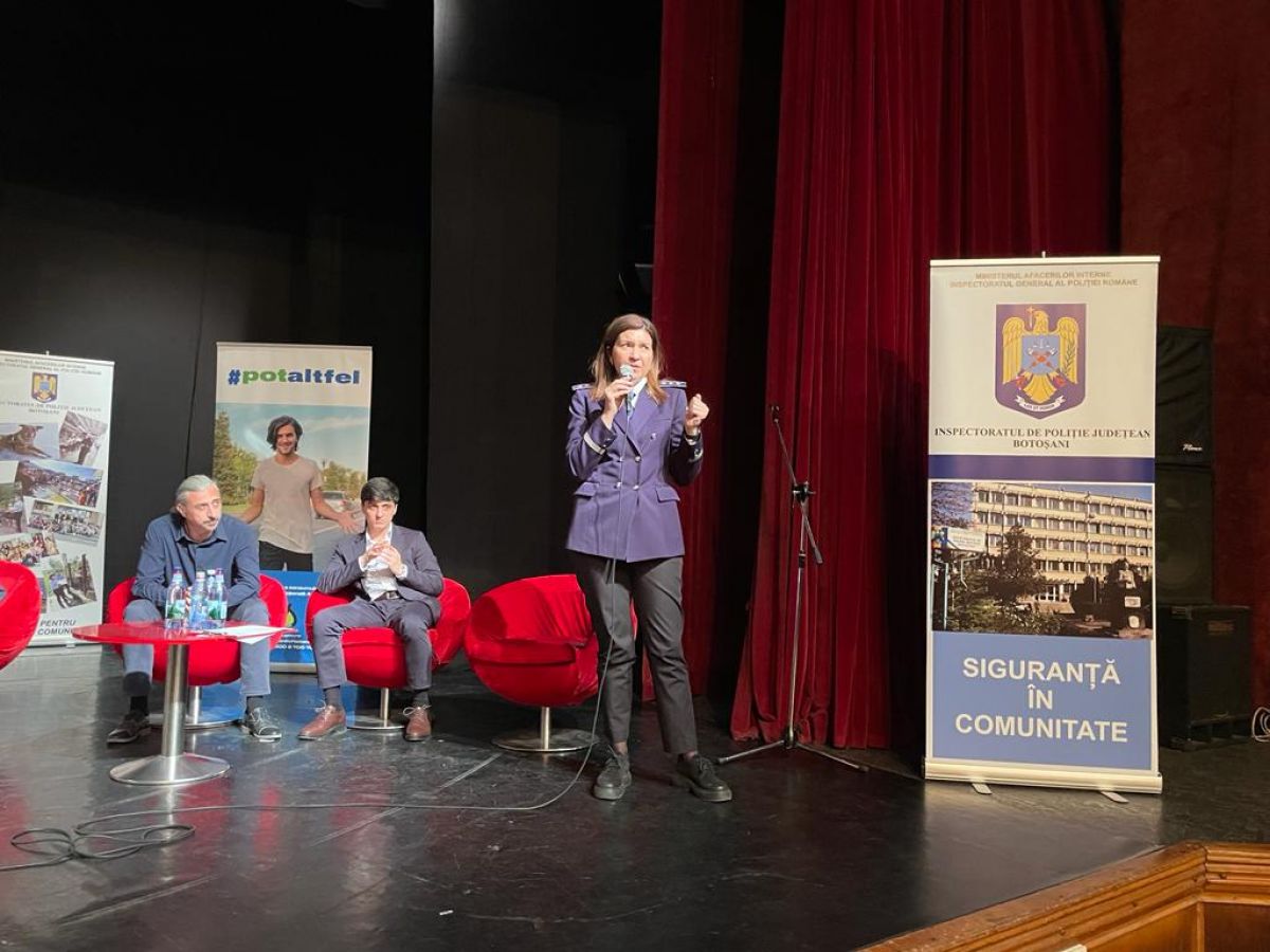 Săptămâna prevenirii criminalității a debutat cu un eveniment inedit organizat, astăzi, 22 mai 2023, la Casa de Cultură a Tineretului de către Inspectoratul de Poliție Județean Botoșani și Consiliul Județean Botoșani – Autoritatea Teritorială de Ordine Publică, în parteneriat cu Inspectoratul Școlar Județean Botoșani.