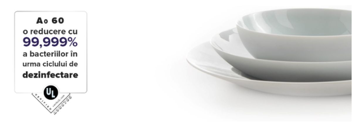 Se garantează o reducere de 99,999% a bacteriilor datorită legăturii dintre durata ciclului de spălare, temperatura de spălare și de clătire și acțiunea substanțelor chimice. Gama de mașini de spălat vase Hygiene&Clean reduc riscul de expunere la agenți patogeni periculoși și vă asigură că, clienții și angajații dvs. rămân în siguranță.