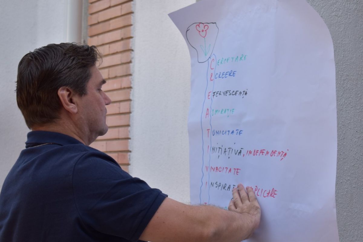 „Sperăm să avem o săptămână productivă, o săptămână care să vă facă să vă simțiți bine în primul rând. Iar în al doilea rând, să vă facă să experimentați alături de colegii participanți metode de lucru non-formale. Activitatea noastră cuprinde două părți, prima este aceasta, de formare a dv. ca facilitatori în domeniul dezvoltării creativității. A doua parte va fi un laborator de lucru non-formal pe care îl veți desfășura cu elevii și ne bucurăm că începe școala, astfel încît să putem participa împreună cu elevii noștri la aceste laboratoare non-formale, în incinta CCD”