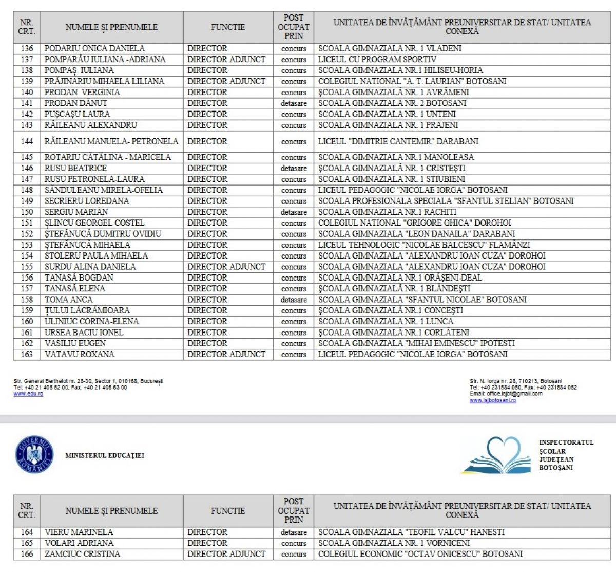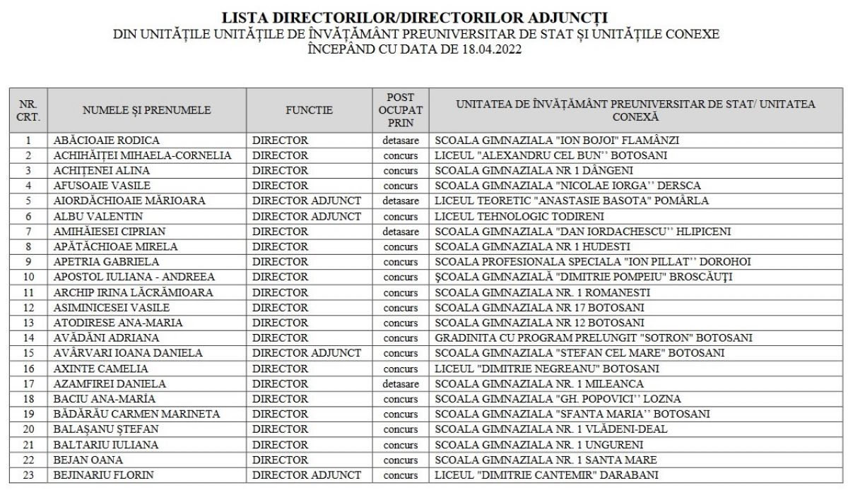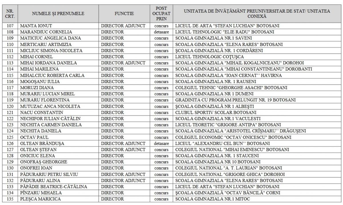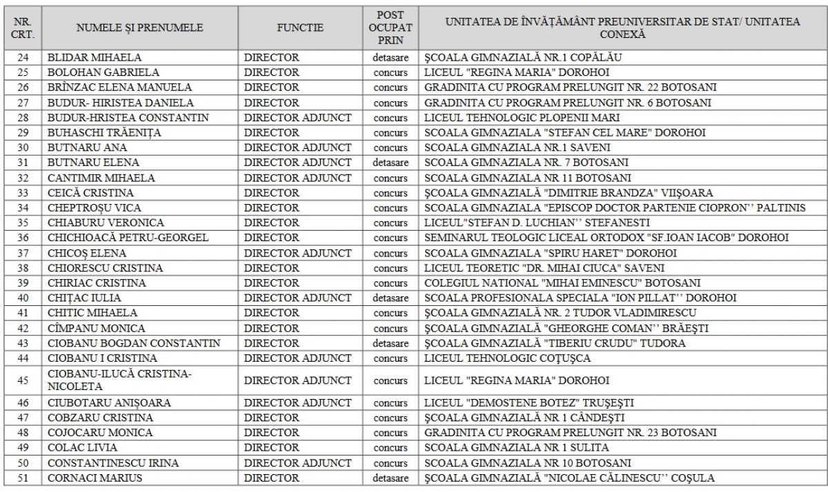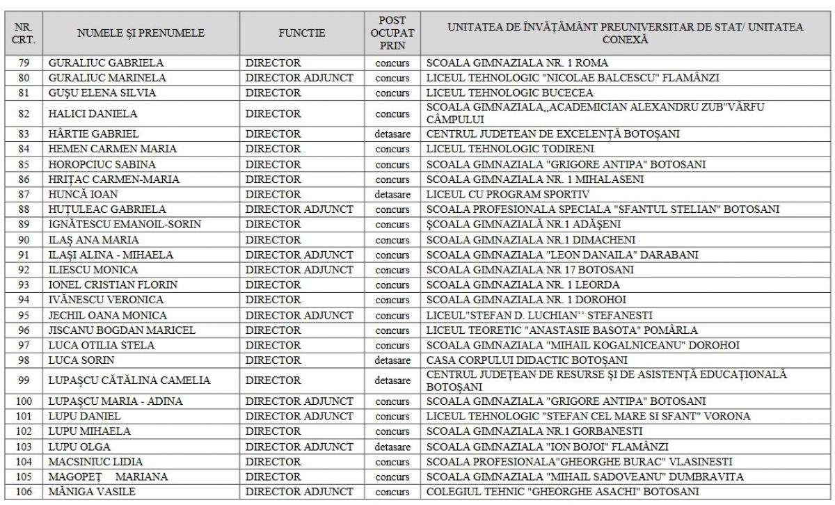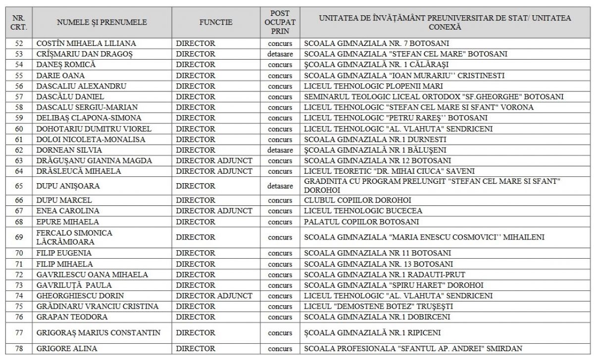 Peste 85 la sută dintre funcțiile de director și director adjunct din unitățile de învățământ preuniversitar din județul Botoșani ocupate prin concurs.
