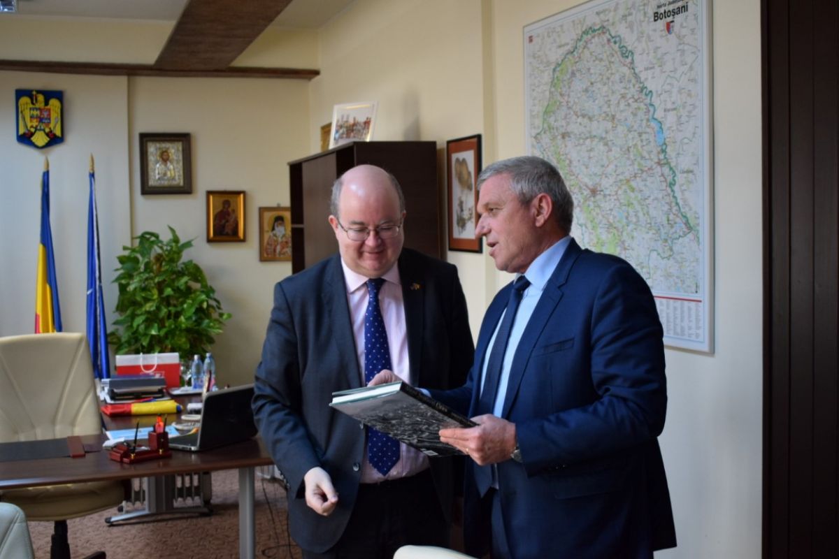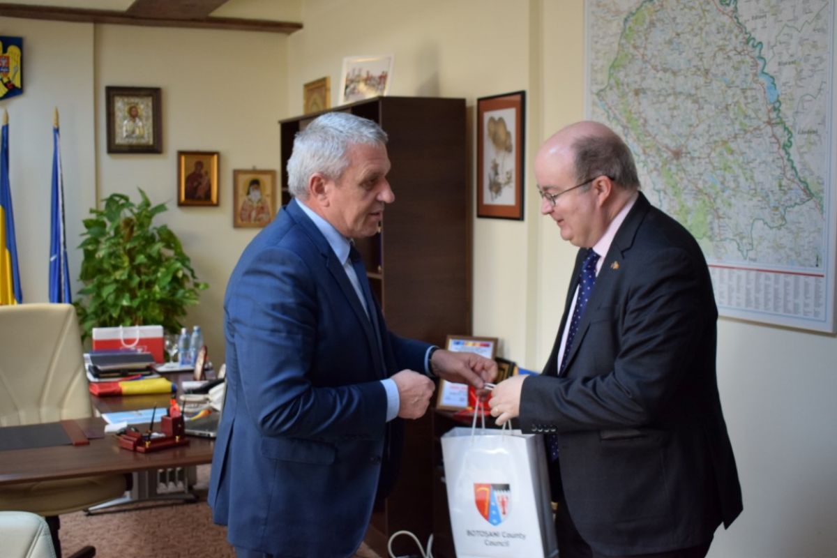 Aflat pentru a doua oară la Botoșani, ambasadorul a avut o întâlnire cu reprezentanții administrației județene: Costică Macaleți, președinte al Consiliului Județean și vicepreședinții Dorin Birta și Liviu Toma.