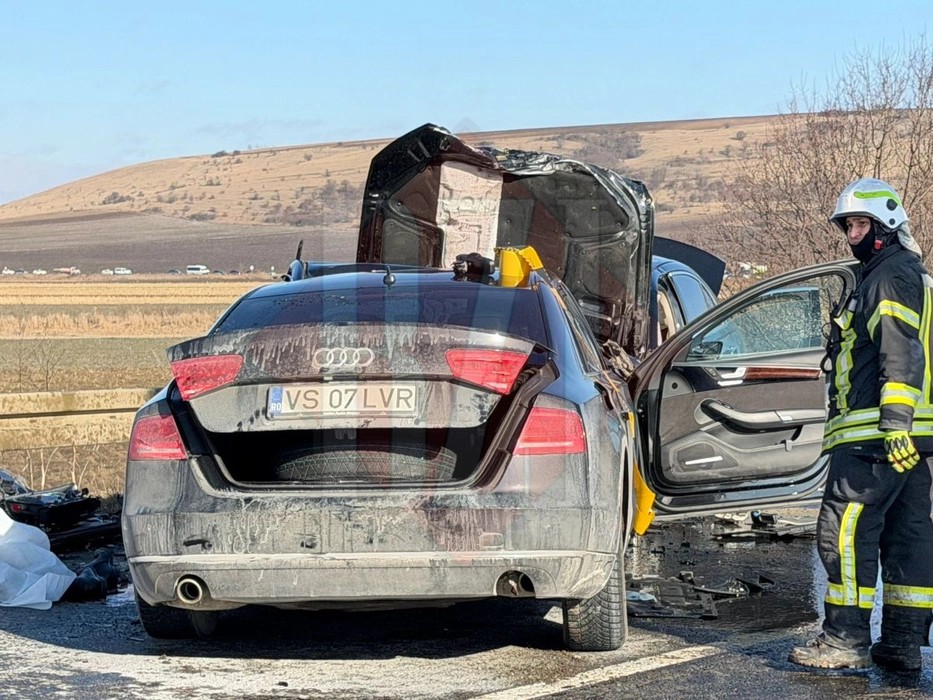 Două autoturisme de lux, înmatriculate în județul Vaslui, s-au izbit frontal la Ciortești.