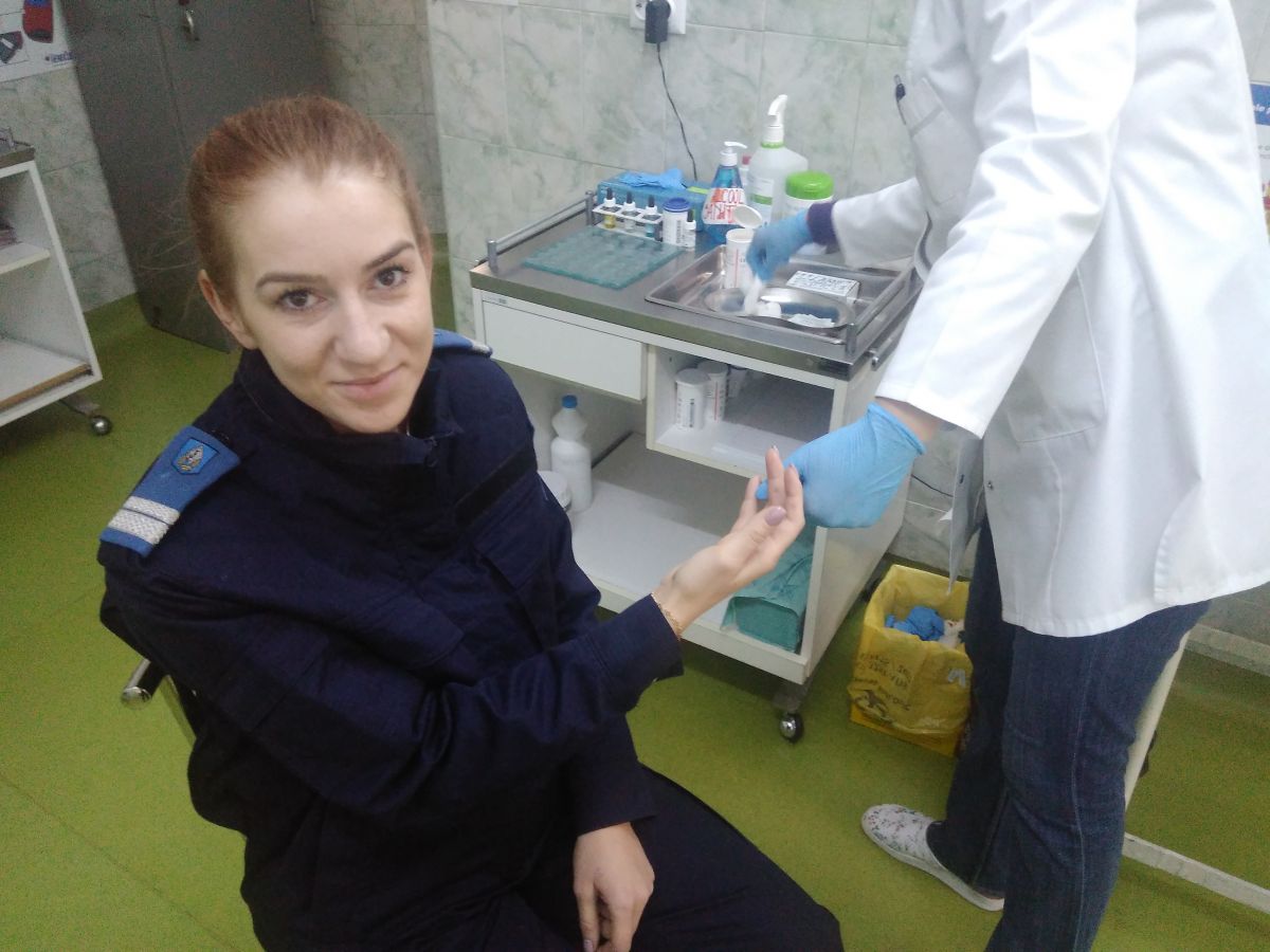 Dan și Cosmina sunt doi dintre jandarmii care au donat sânge marţi dimineață, în urma apelului făcut de Centrul de Transfuzie Sanguină Botoșani.