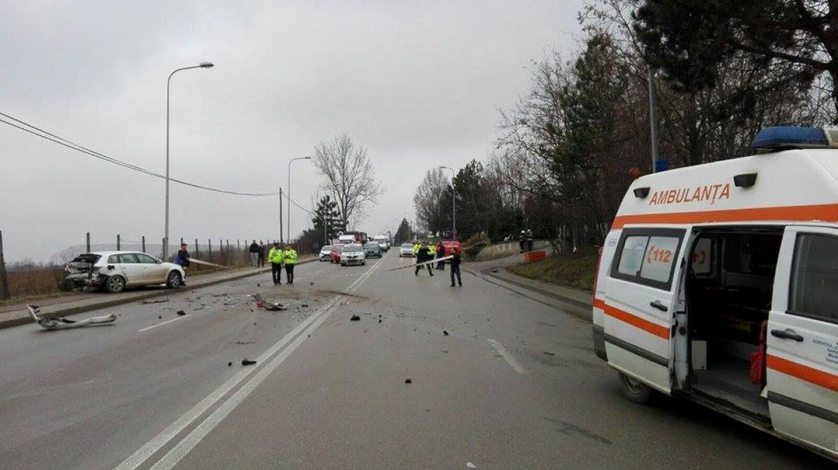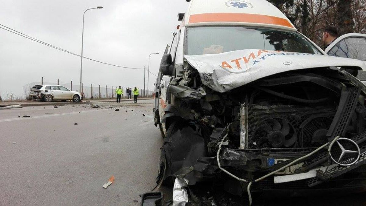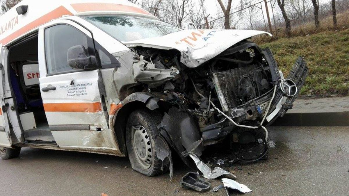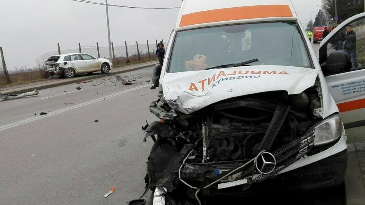 În urma impactului automobilul a ajuns pe trotuar iar Salvarea pe celălalt sens de mers, șoferii de pe cele două mașini fiind transportați la spital.