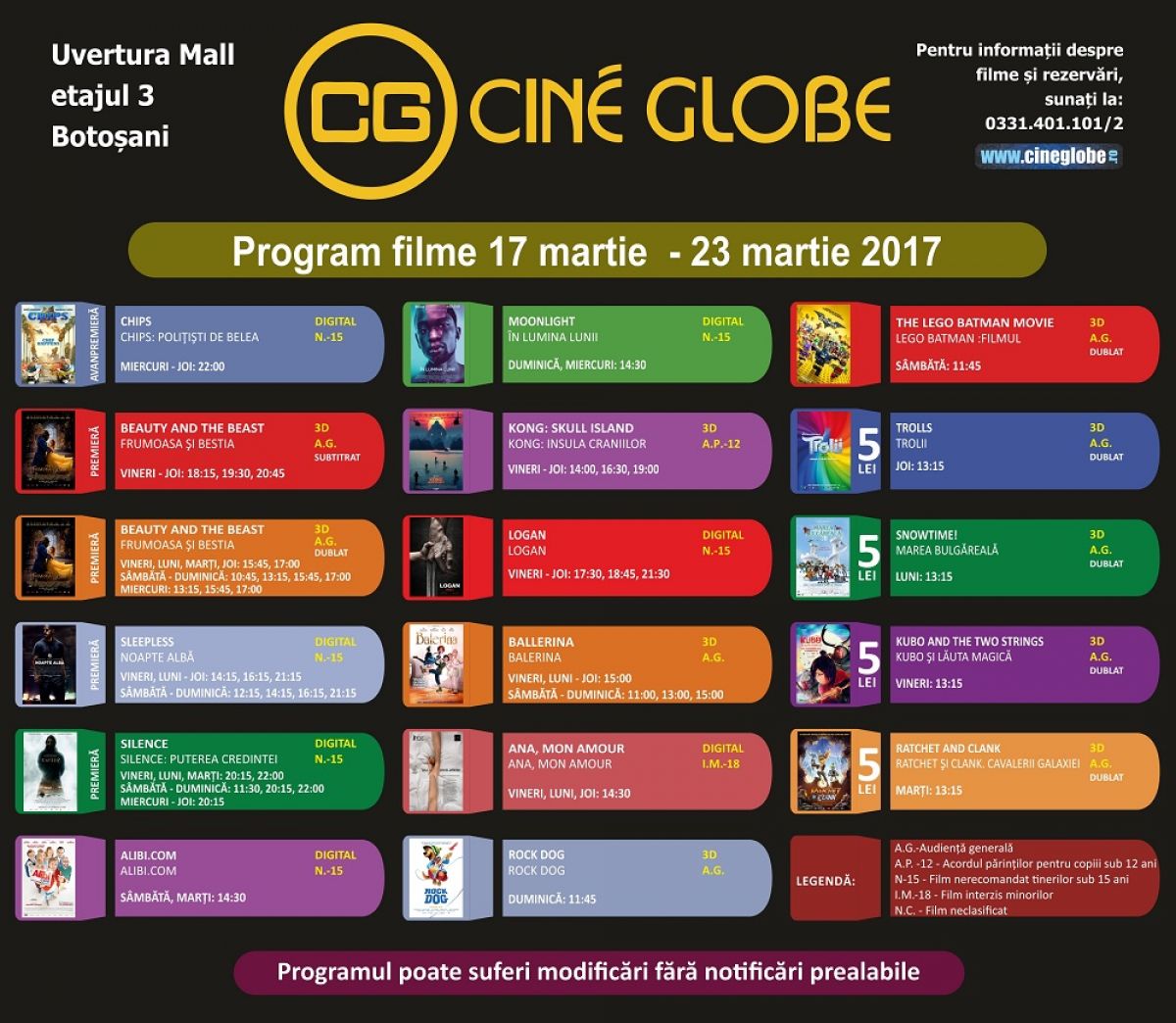Iubitorii de film din Botoşani pot petrece momente plăcute în perioada 17 – 23 martie la Cine Globe din incinta Uvertura Mall cu noi pelicule care vor fi proiectate în avanpremieră.