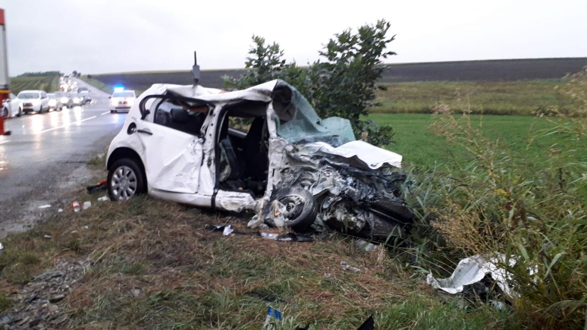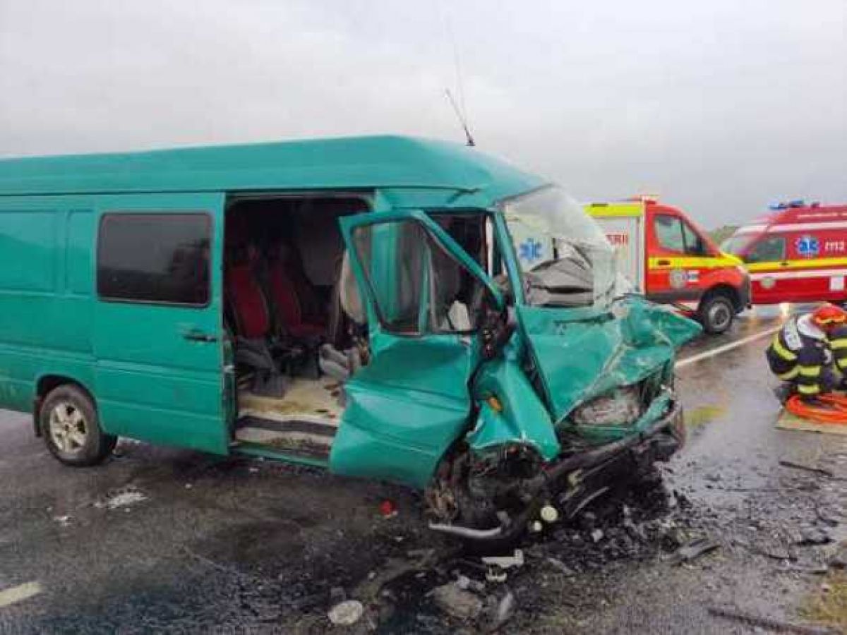 Un autoturism s-a izbit într-un microbuz, accidentul fiind soldat cu decesul celor două persoane din autoturism și rănirea mai multor persoane din microbuz.