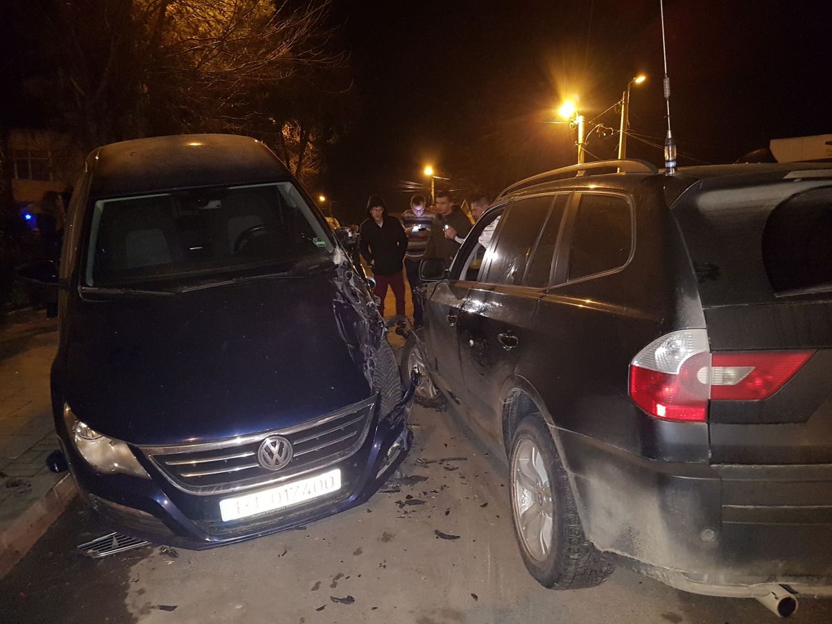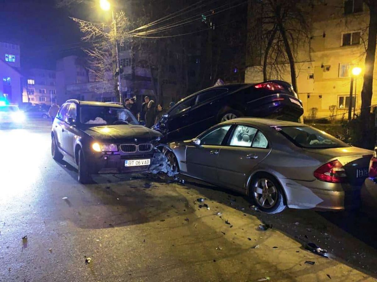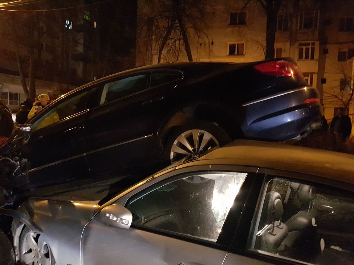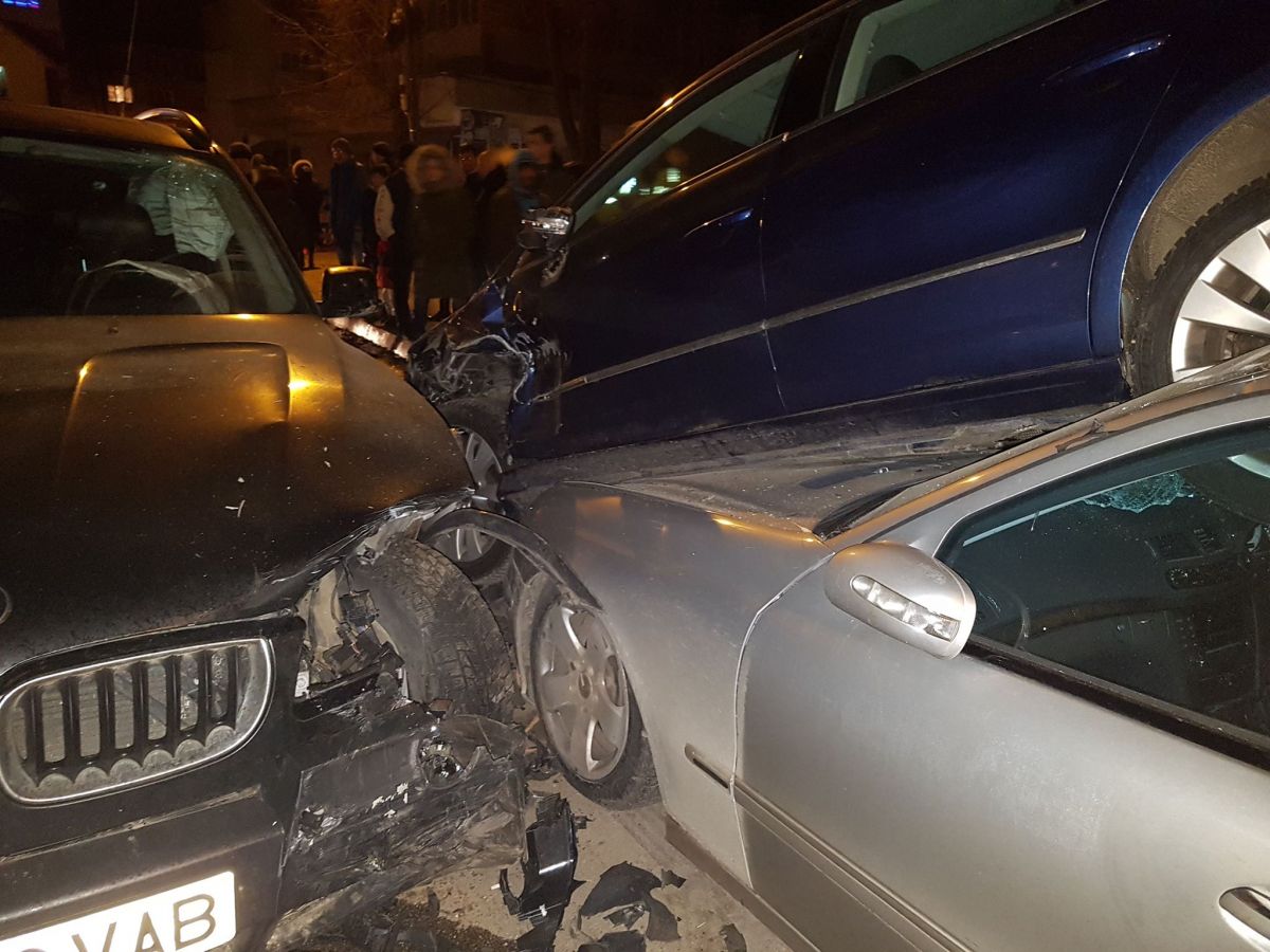 Doi tineri rupți de beți s-au izbit cu BMW-ul într-un Passat pe care l-au aruncat peste un Mercedes – GALERIE FOTO