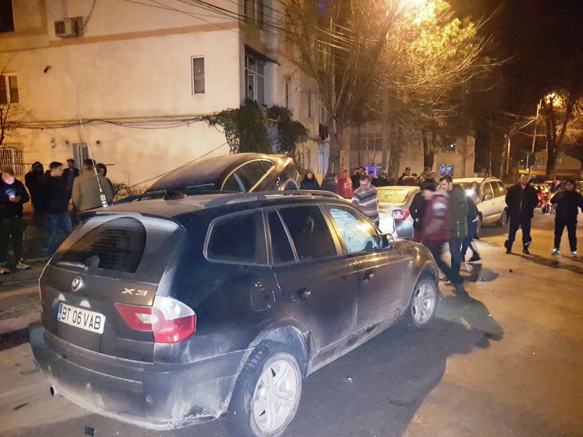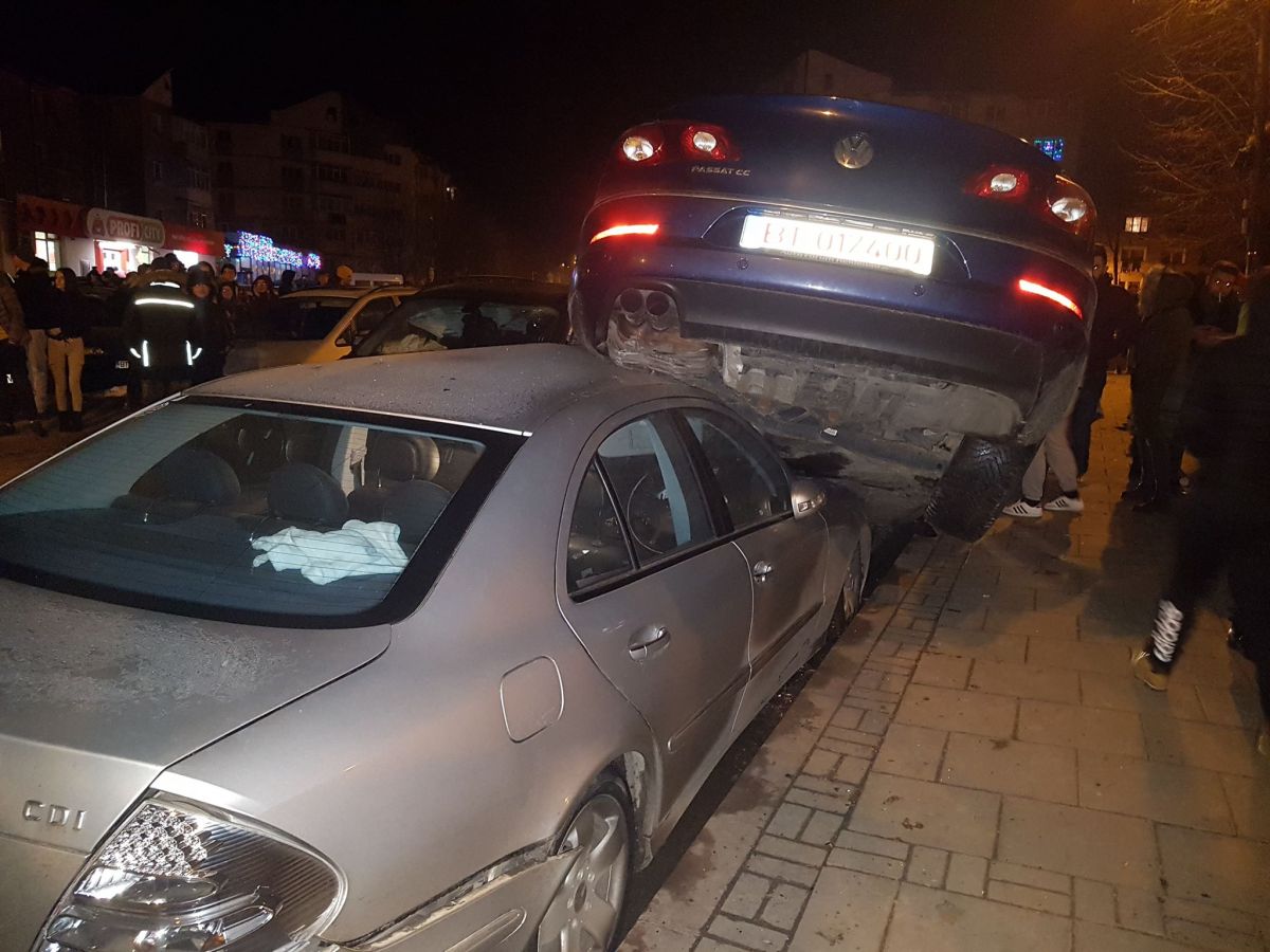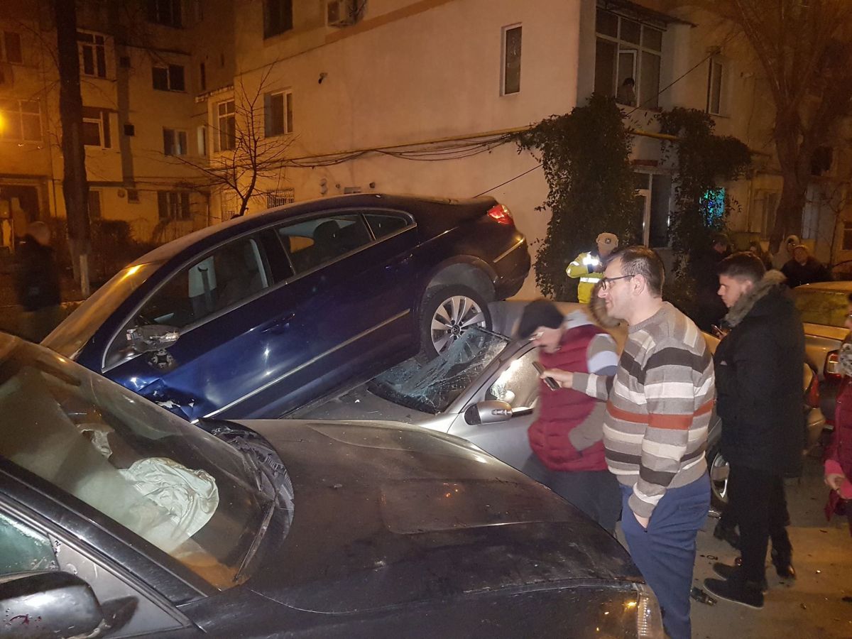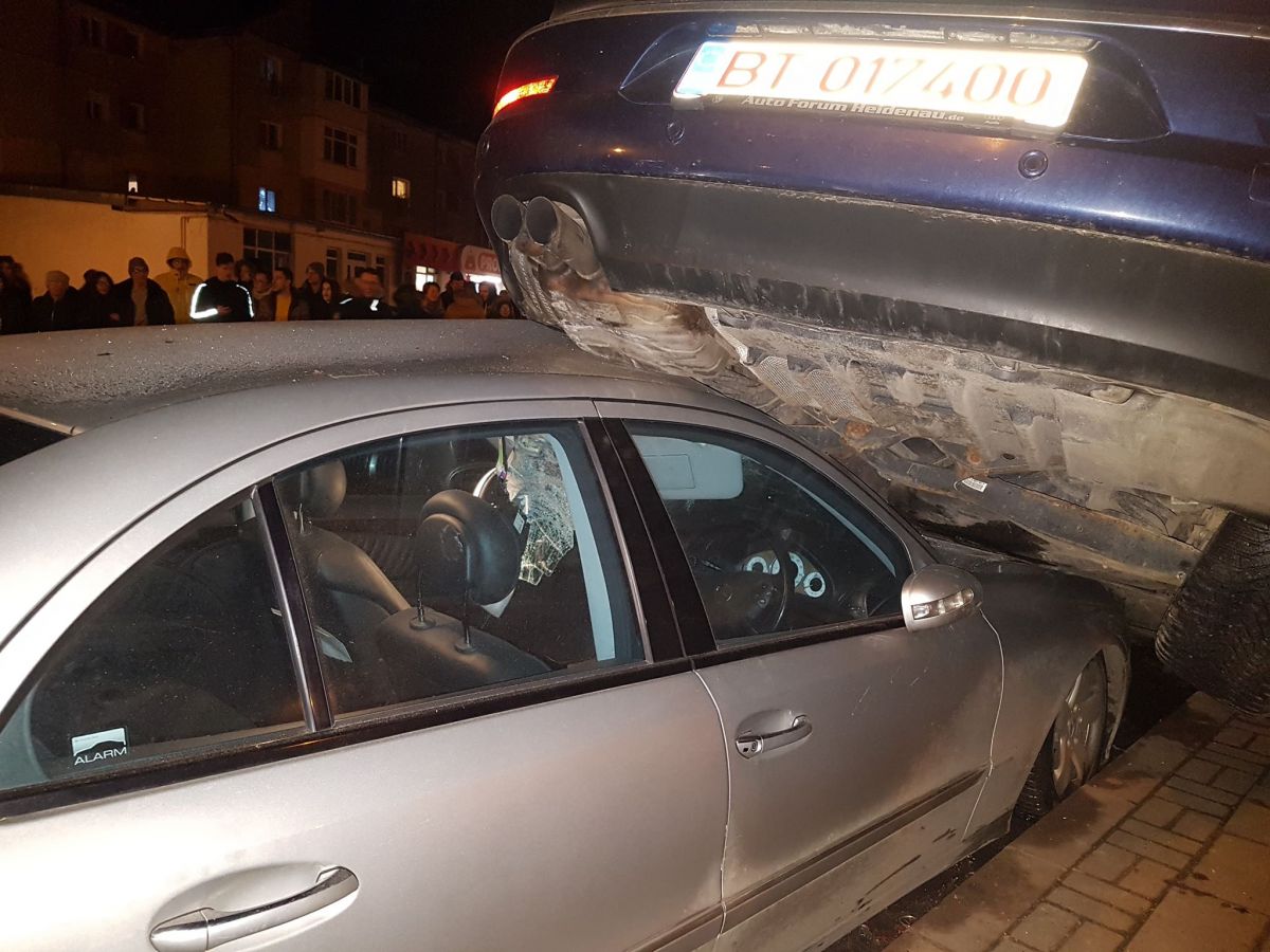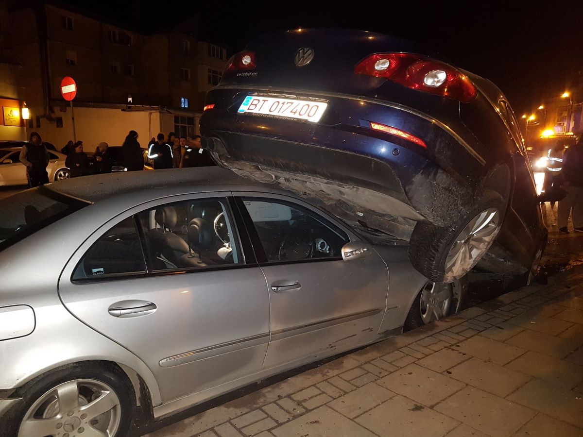 Doi tineri rupți de beți s-au izbit cu BMW-ul într-un Passat pe care l-au aruncat peste un Mercedes – GALERIE FOTO