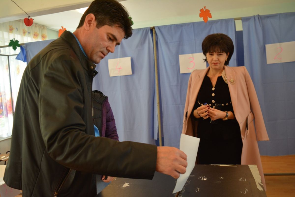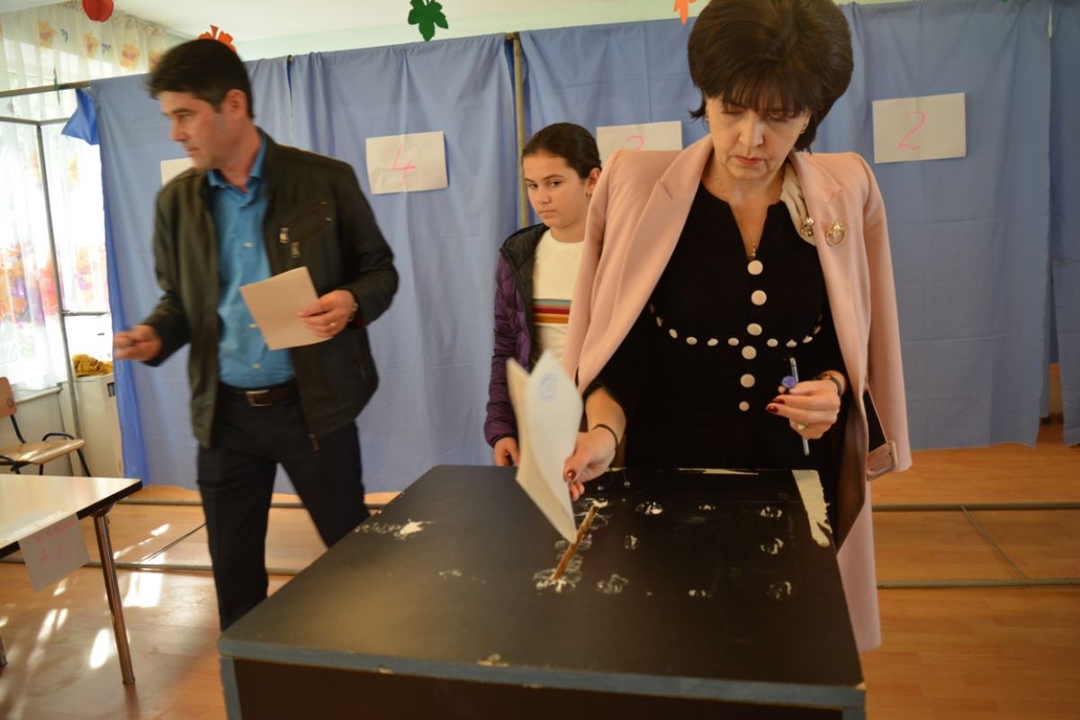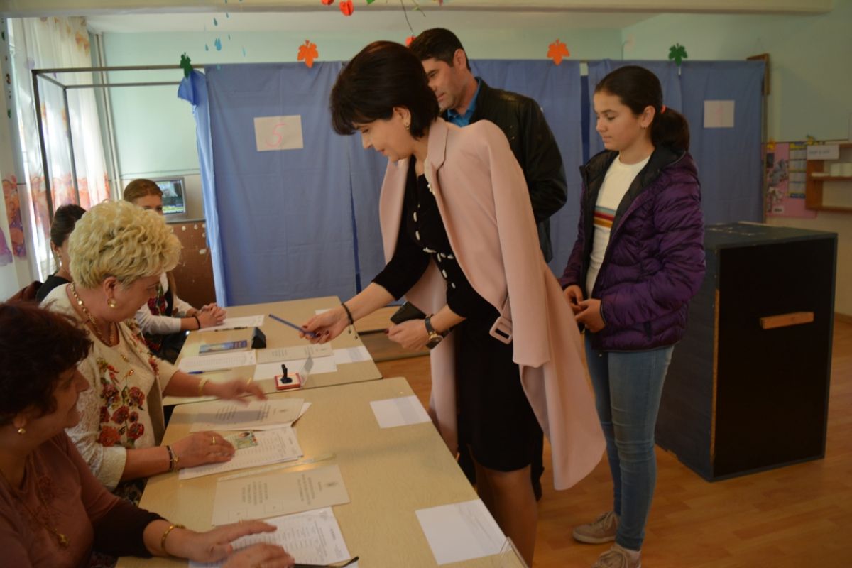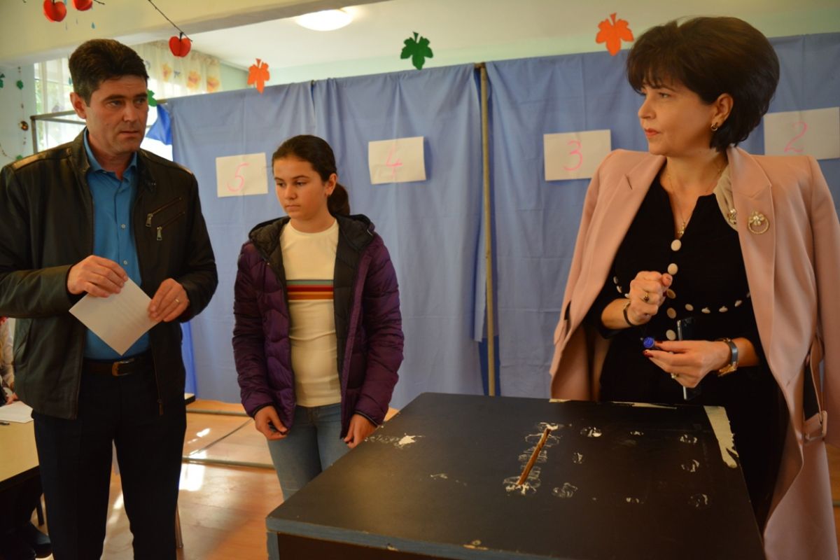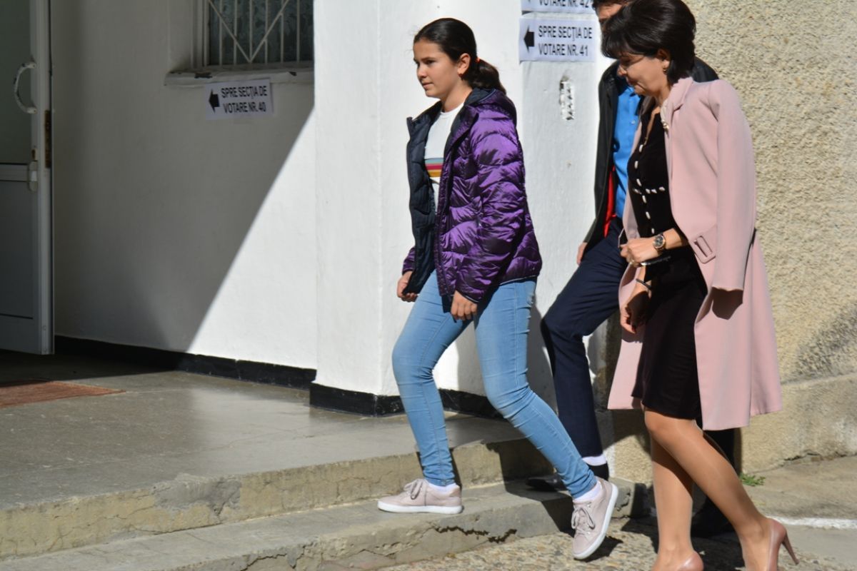 Lidera județeană a social-democraților s-a prezentat la urne sâmbătă la amiază. Nu singură, ci alături de soțul său, Dinu și de fetiță, Măriuca.