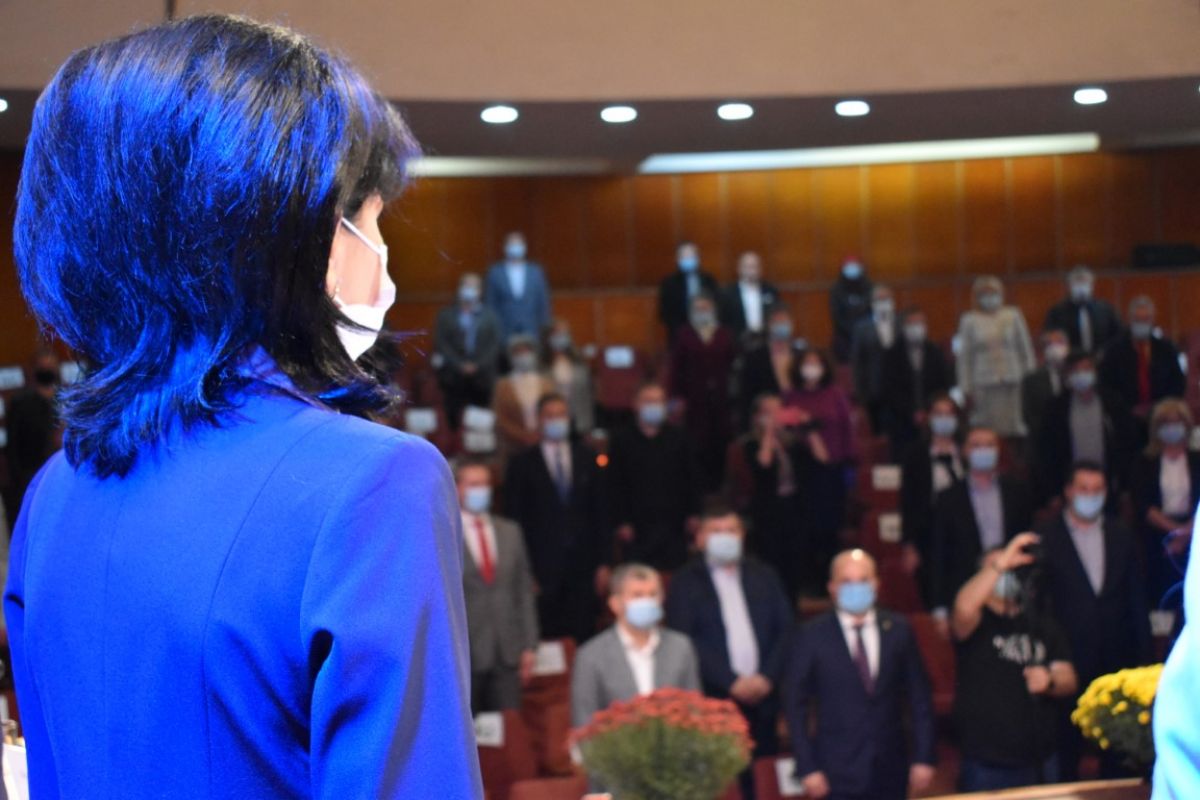 Președintele Consiliului Județean, Doina Federovici a avut un discurs pentru ședința de învestire pe care l-a rostit în fața celor aflați în sală, colegi sau invitați prin care a adresat mulțumiri pentru prezență, una mai puțin numeroasă având în vedere contextul epidemiologic.