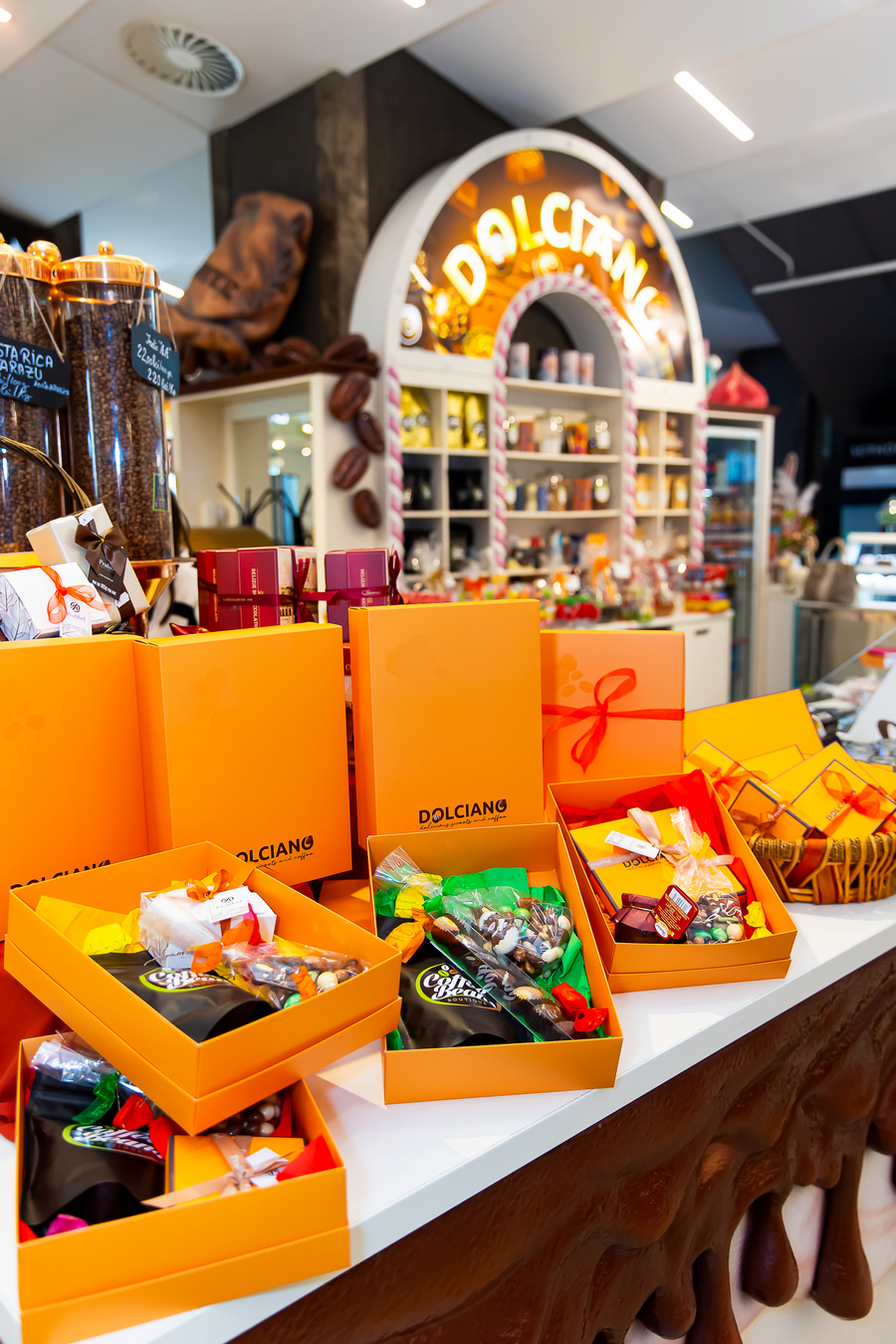 Dolciano îți oferă o experiență a simțurilor pentru care vei dori să revii ori de căte ori îți dorești să „călătorești” de-a lungul celor mai importante teritorii ale gastronomiei internaționale. De la ciocolata de specialitate, pe care o vei găsi în multe variante, garnisită cu fructe, cu fistic sau alte arome, halvaua îmbogățită, de asemenea, cu feluri variate de esențe fructate sau de vanilie, acadele pentru copii și până la dulciurile de sezon care îți aduc atmosfera de sărbătoare și îi bucură pe cei mici, magazinul este mai întâi de toate un carusel de surprize pentru toate vârstele. Mai poți găsi coșuri cadou personalizate în funcție de preferințele tale și poți comanda bunătăți pentru cadouri corporate.