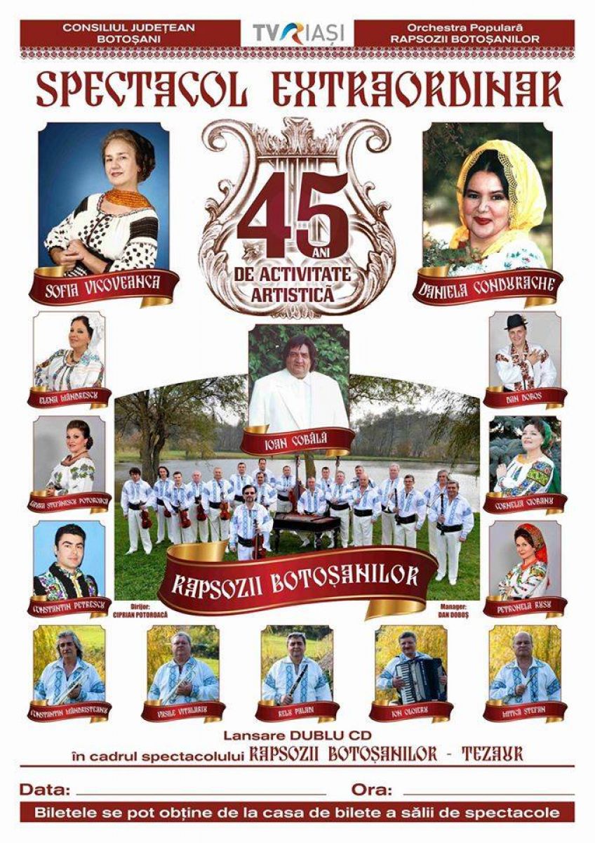 Din acest motiv și Orchestra Populară Rapsozii Botoșanilor informează printr-un comunicat de presă trimis redacției că a amânat spectacolul aniversar ce trebuia sa aibă loc la Casa de Cultură Radauti – Bucovina în data de 24 martie orele 19.00 , pentru data de 25 martie la aceeași oră.