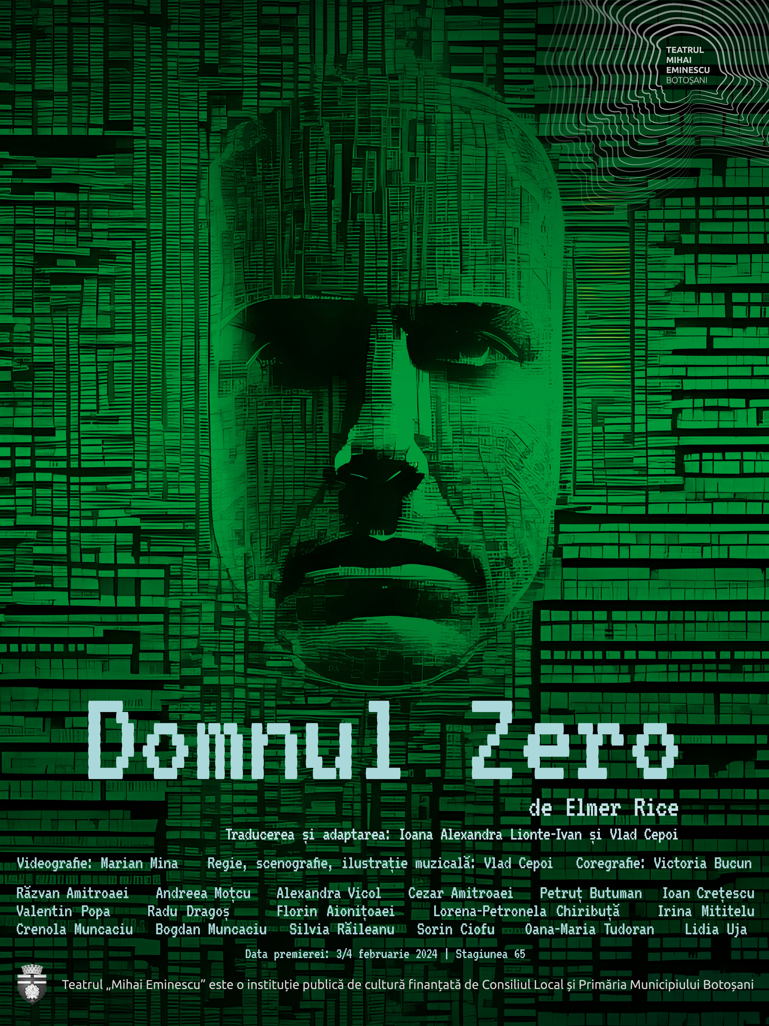 Duminică, 7 aprilie, de la ora 18:00 botoșănenii sunt invitați la spectacolul „Domnul Zero” de Elmer Rice, regia Vlad Cepoi.