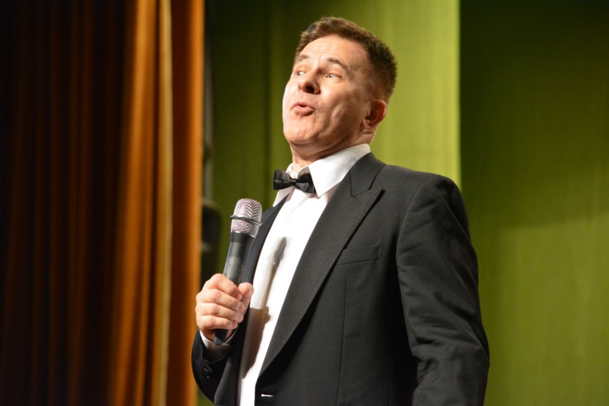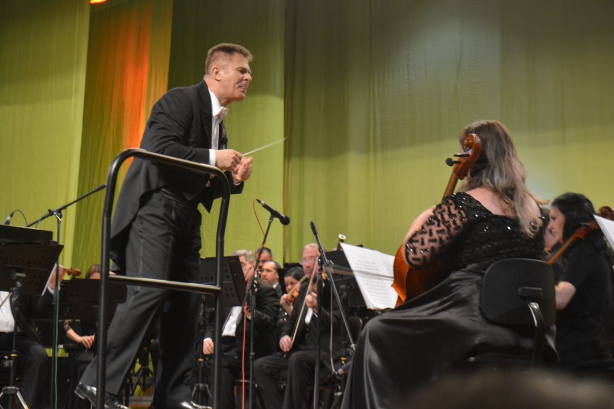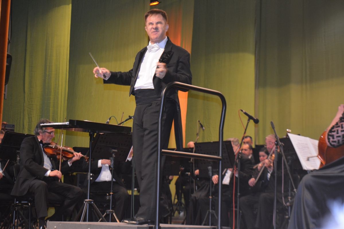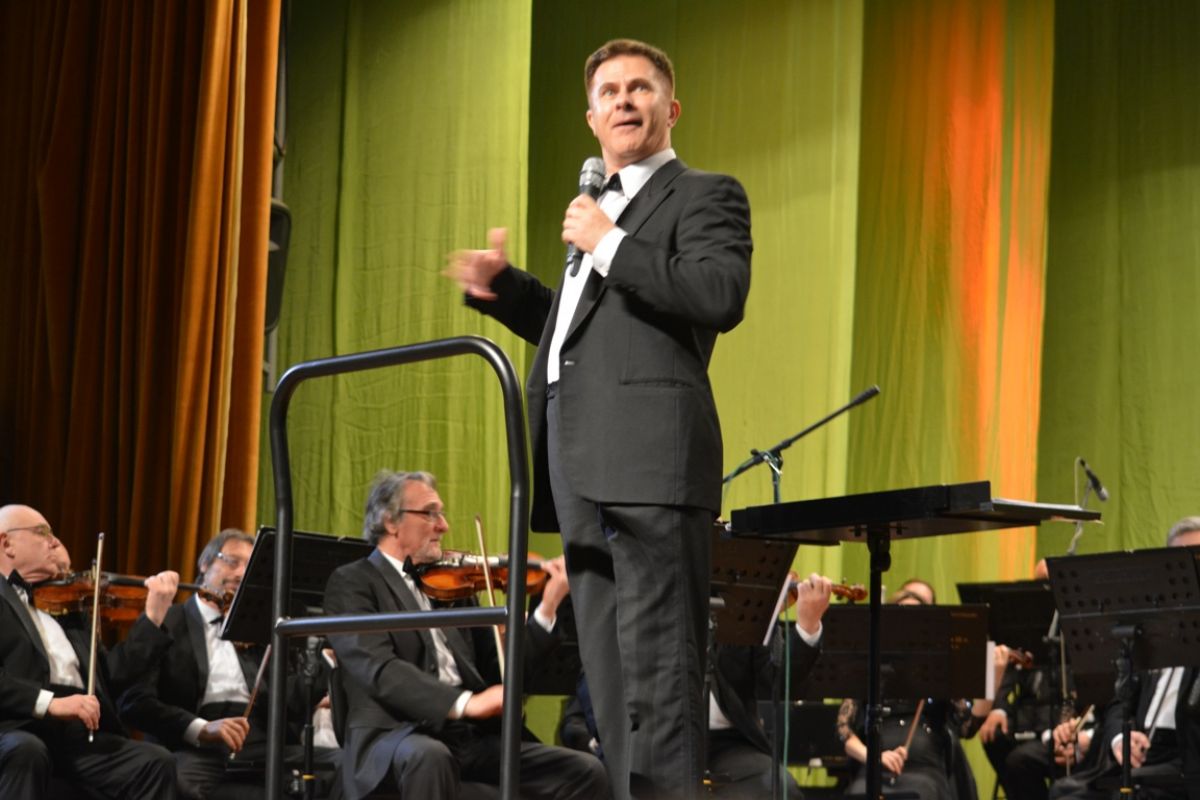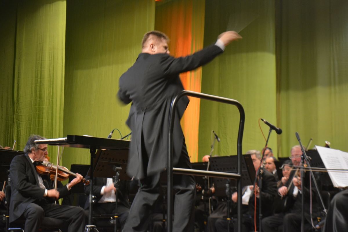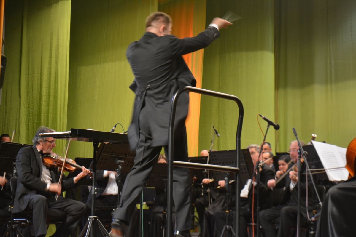 Și s-ar fi desfășurat fără probleme pe aceleași coordonate dacă pe scenă nu și-ar fi făcut apariția cunoscutul comediant. Acesta a anunțat pe cei 600 de spectatori care au umplut Casa de Cultură a Sindicatelor că tocmai a cumpărat Orchestra Simfonică de la Botoșani. Ca atare, deranjat de coafura în stil afro a dirijorului Iulian Rusu și de faptul că, ”de câte ori dau mâna cu el rămân cu păr în gură”, l-a trimis la frizer și s-a apucat el de dat indicații, de făcut glume și chiar de cântat cu un prosop într-o mână și cu o sticlă de apă în cealaltă, pentru ca spre final să ajungă inclusiv să dirijeze el orchestra. A avut mai multe intrări și ieșiri care au provocat hohote de râs și aplauze furtunoase atât pe scenă, printre muzicieni, cât mai ales în public.