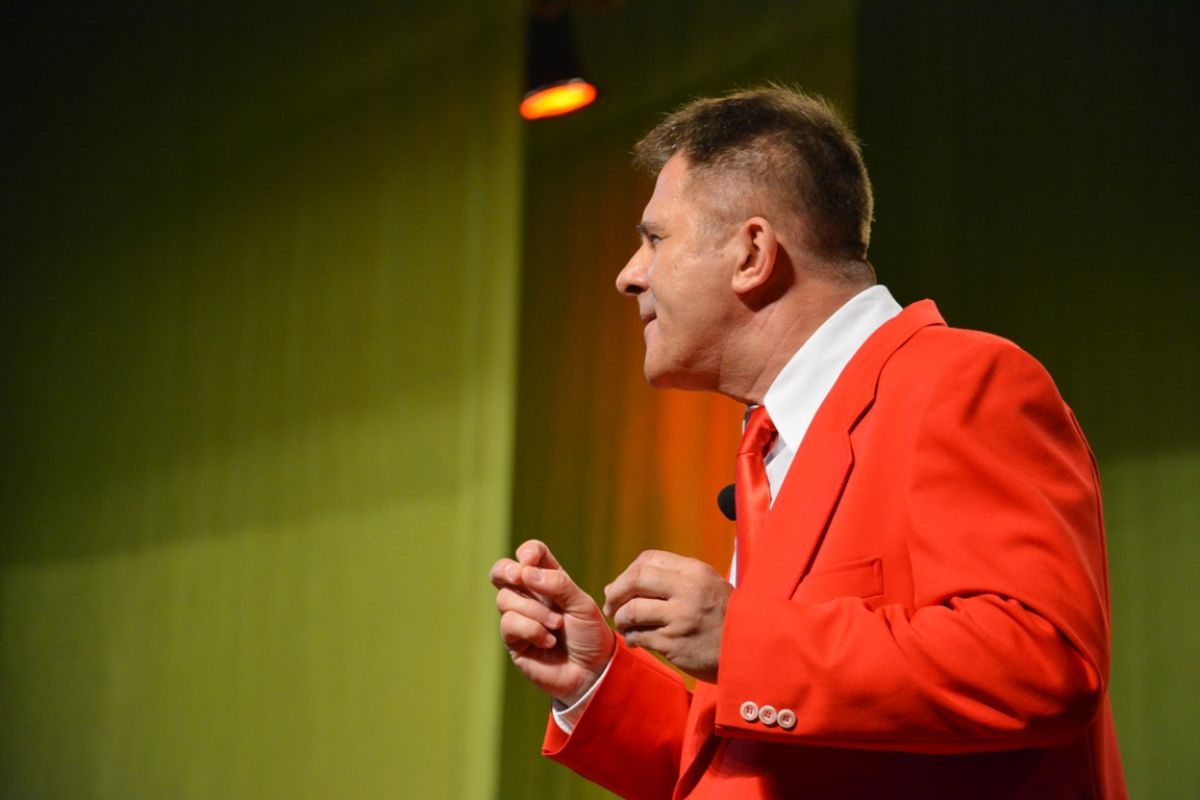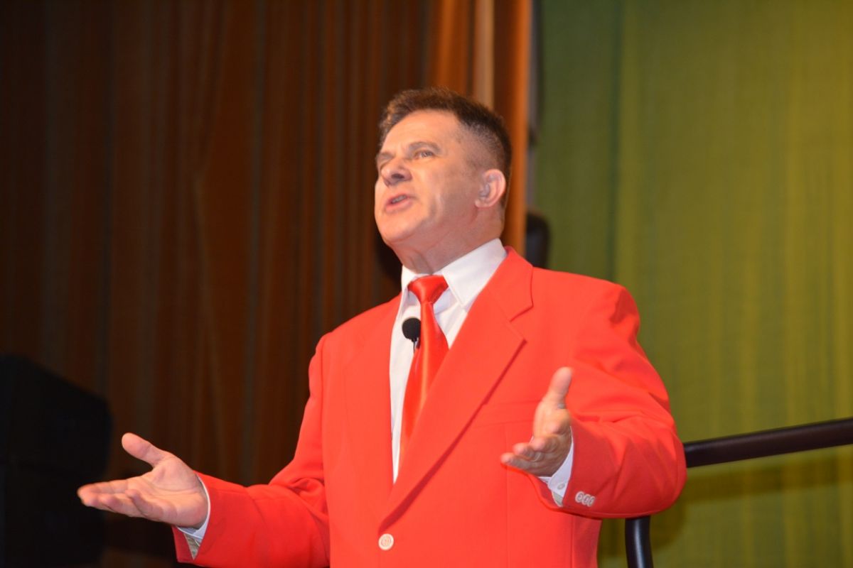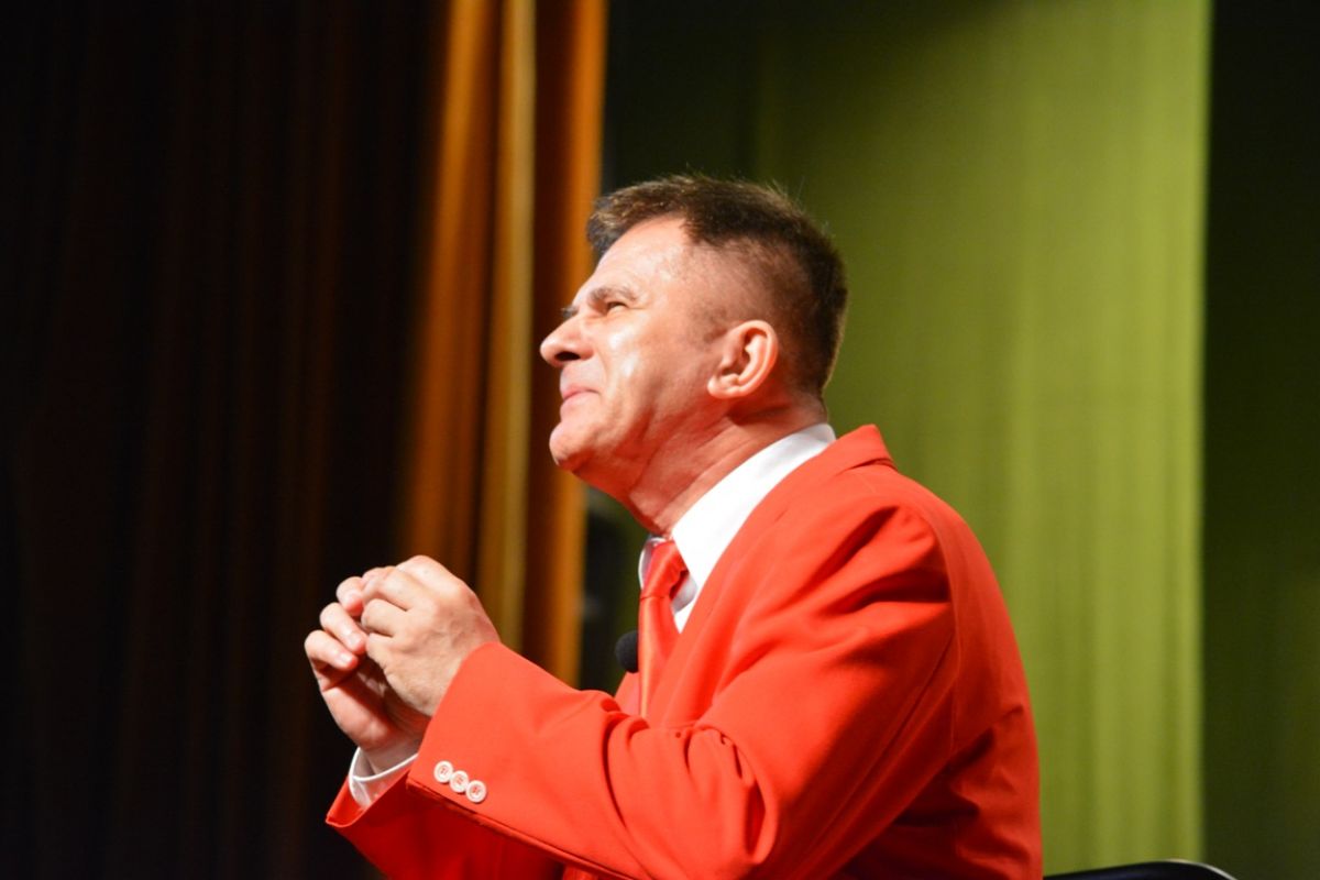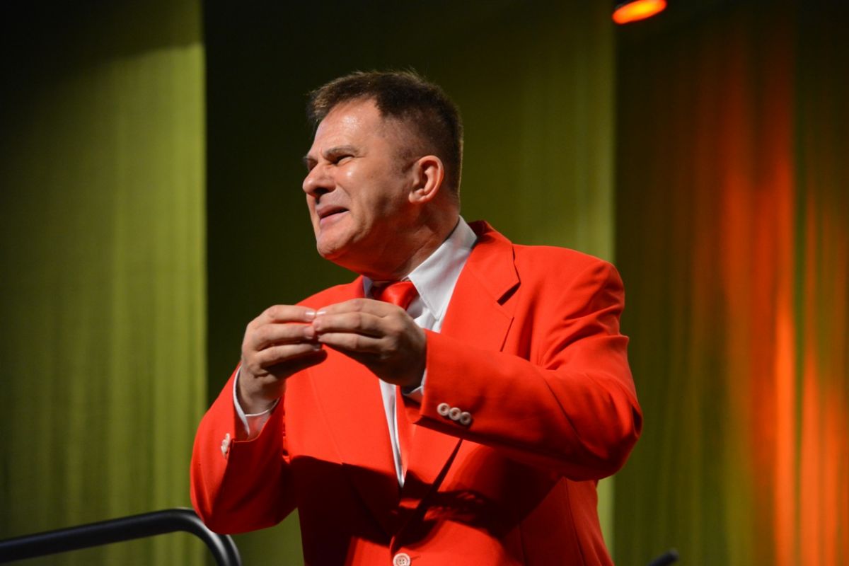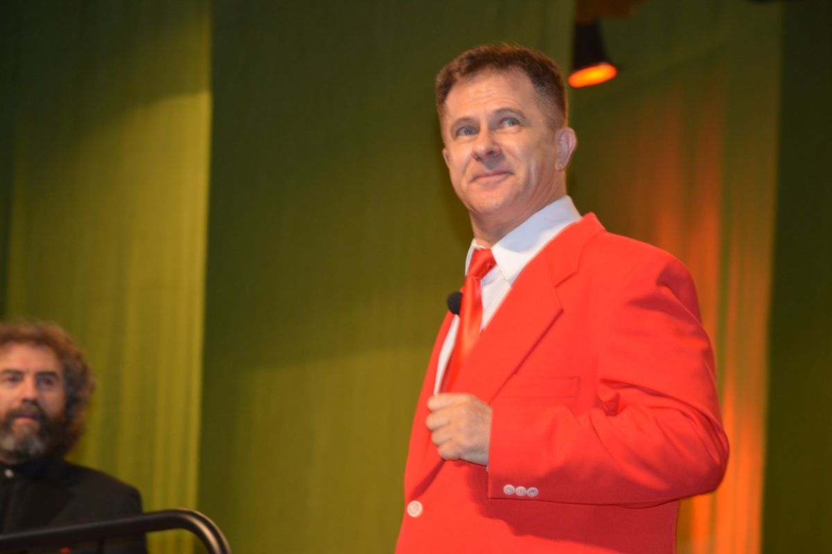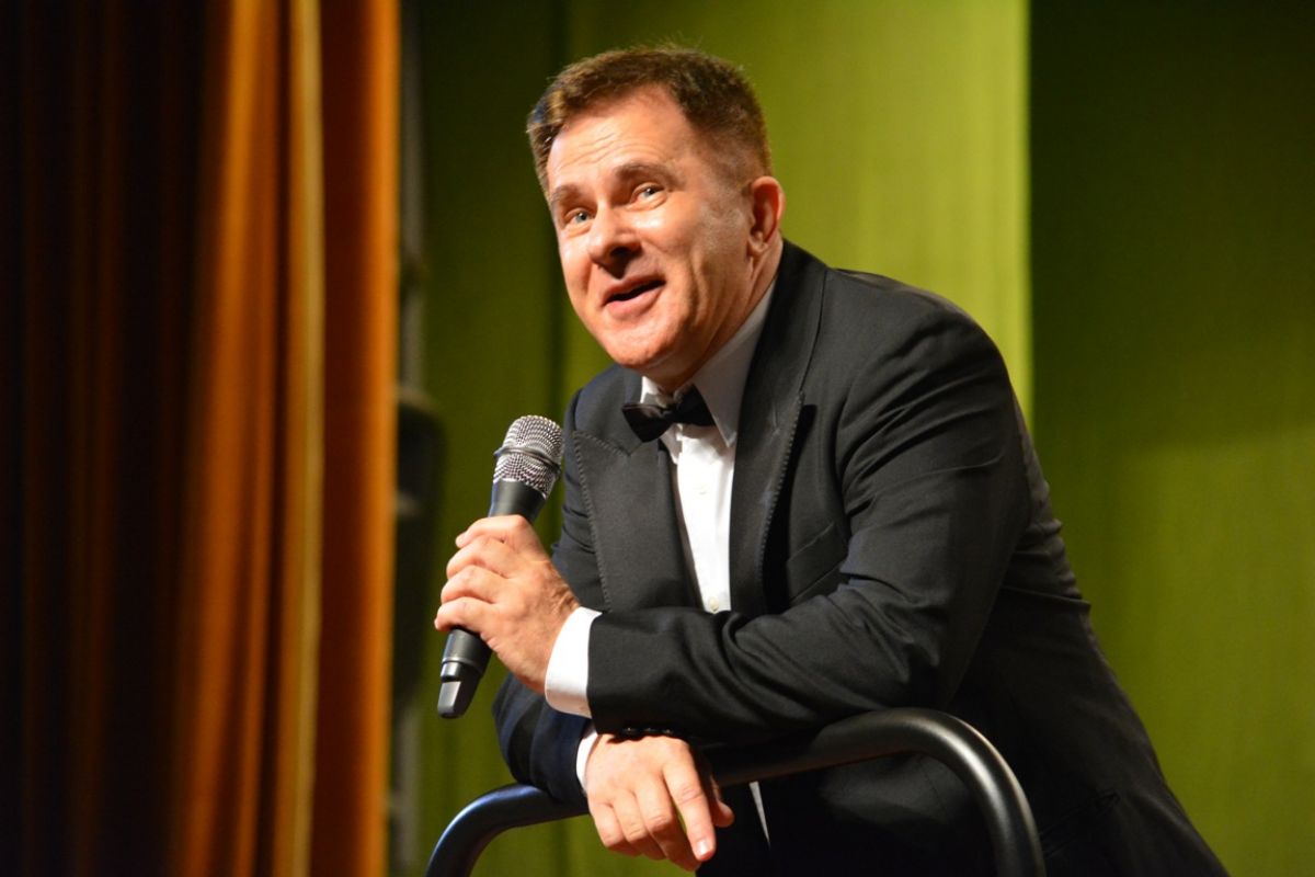 Și s-ar fi desfășurat fără probleme pe aceleași coordonate dacă pe scenă nu și-ar fi făcut apariția cunoscutul comediant. Acesta a anunțat pe cei 600 de spectatori care au umplut Casa de Cultură a Sindicatelor că tocmai a cumpărat Orchestra Simfonică de la Botoșani. Ca atare, deranjat de coafura în stil afro a dirijorului Iulian Rusu și de faptul că, ”de câte ori dau mâna cu el rămân cu păr în gură”, l-a trimis la frizer și s-a apucat el de dat indicații, de făcut glume și chiar de cântat cu un prosop într-o mână și cu o sticlă de apă în cealaltă, pentru ca spre final să ajungă inclusiv să dirijeze el orchestra. A avut mai multe intrări și ieșiri care au provocat hohote de râs și aplauze furtunoase atât pe scenă, printre muzicieni, cât mai ales în public.