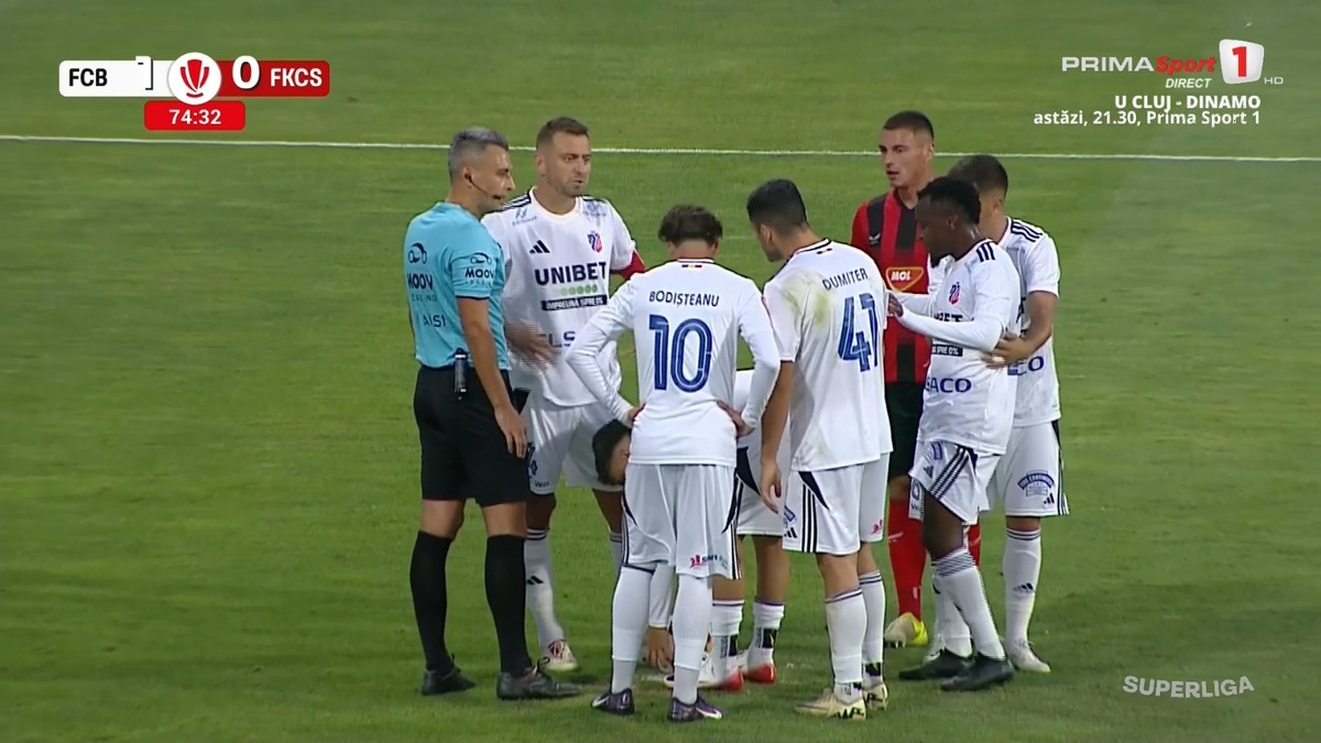Ulterior, s-a îndreptat spre margine pentru a le lua pe cele ale arbitrului de rezervă, Vlad Băban.