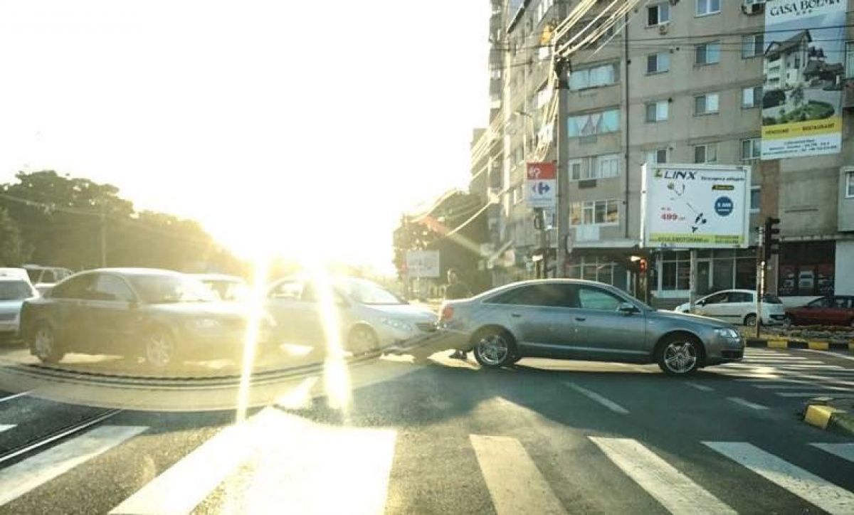 Ambele maşini se deplasau pe Calea Naţională, pe sensul spre centrul oraşului şi amândouă au semnalizat stânga, pentru a coborî spre Împărat Traian.