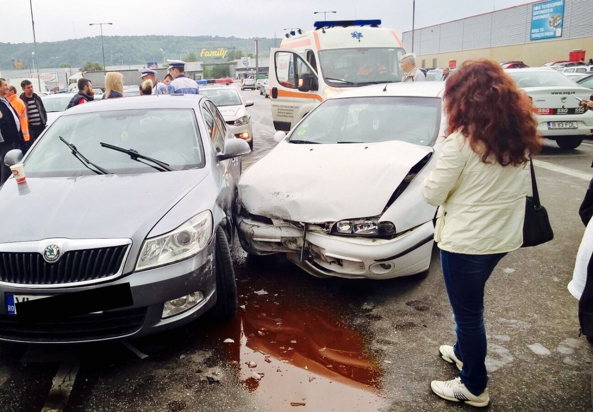 O femeie în vârstă de 35 de ani, a ajuns la spital rănită, după ce a fost implicată într-un accident în parcarea unui centru comercial.