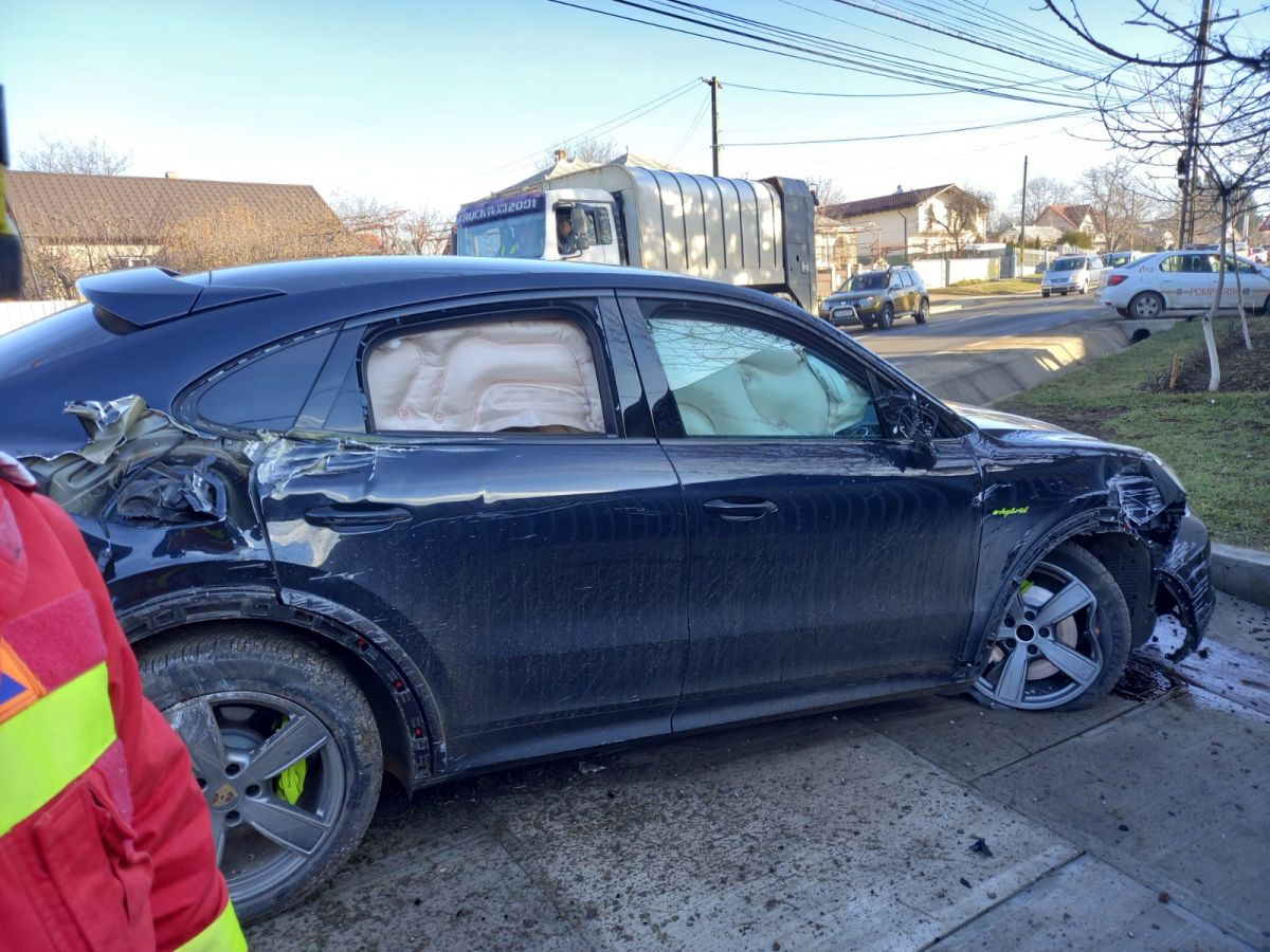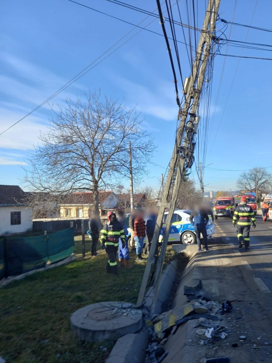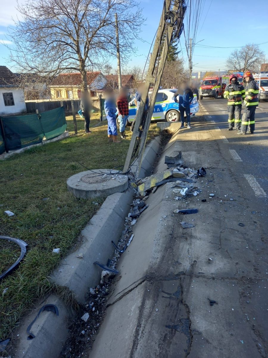 Mașinile au fost serios avariate în urma impactului, una fiind proiectată într-un stâlp de electricitate.
