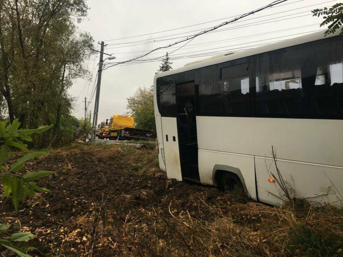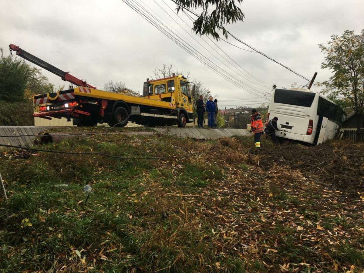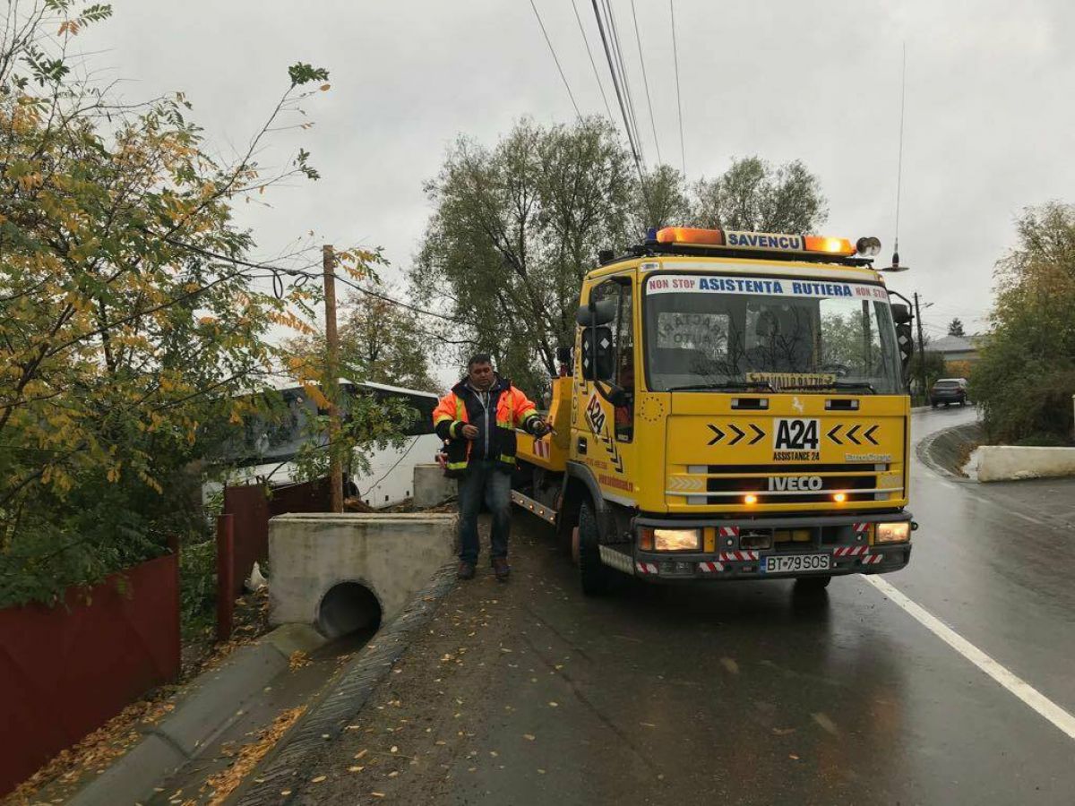 Echipajul trimis la faţa locului pentru readucerea autocarului pe carosabil a muncit două ore până ce a reuşit să-l tracteze.