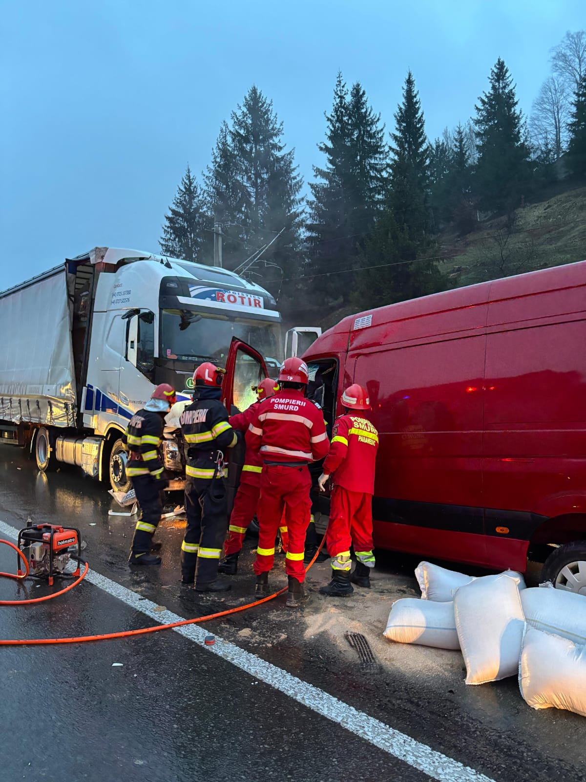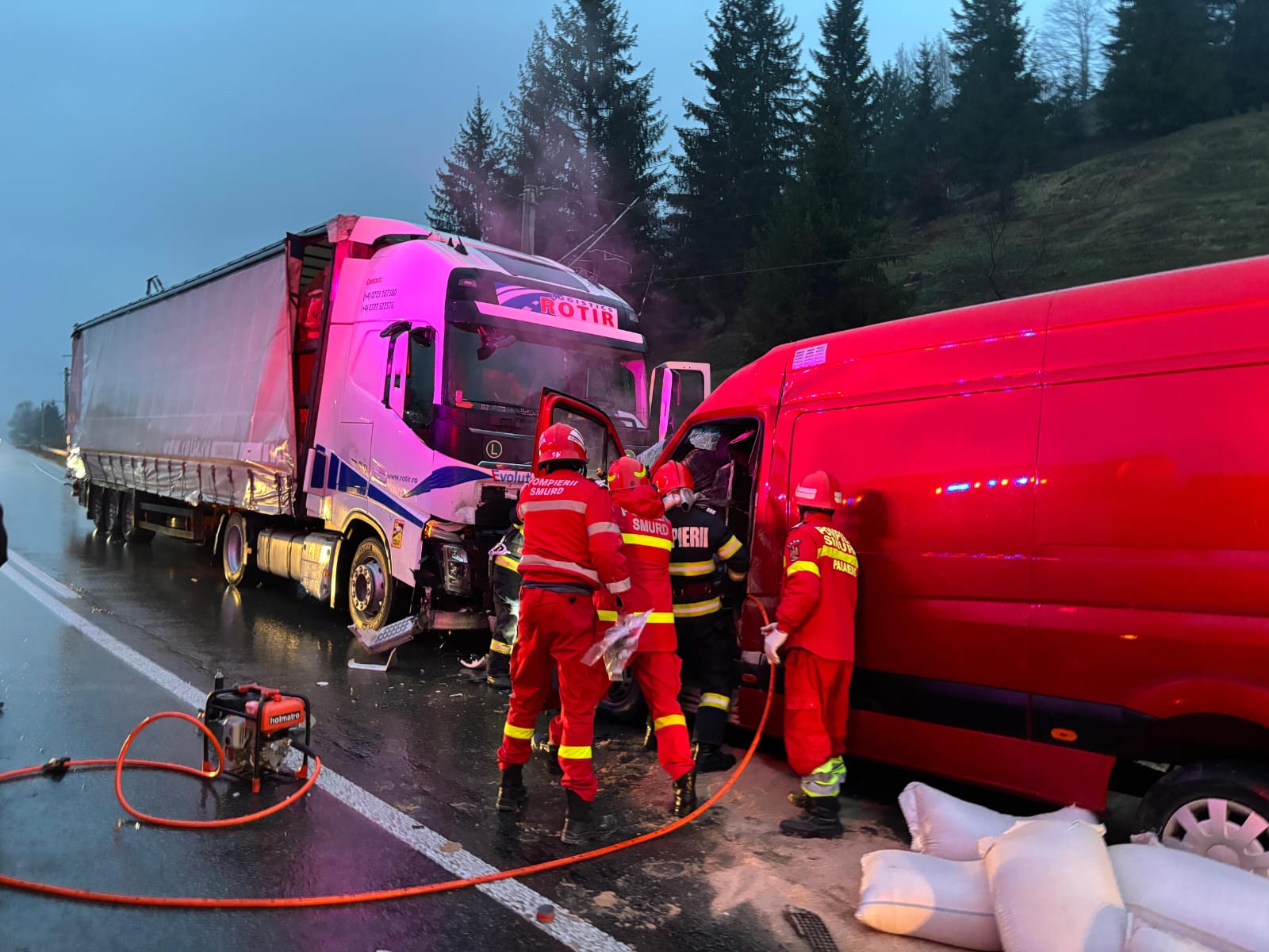 Două persoane, aflate în autoutilitară, au rămas încarcerate. Ambele, conștiente și cooperante, au fost extrase de către militari.