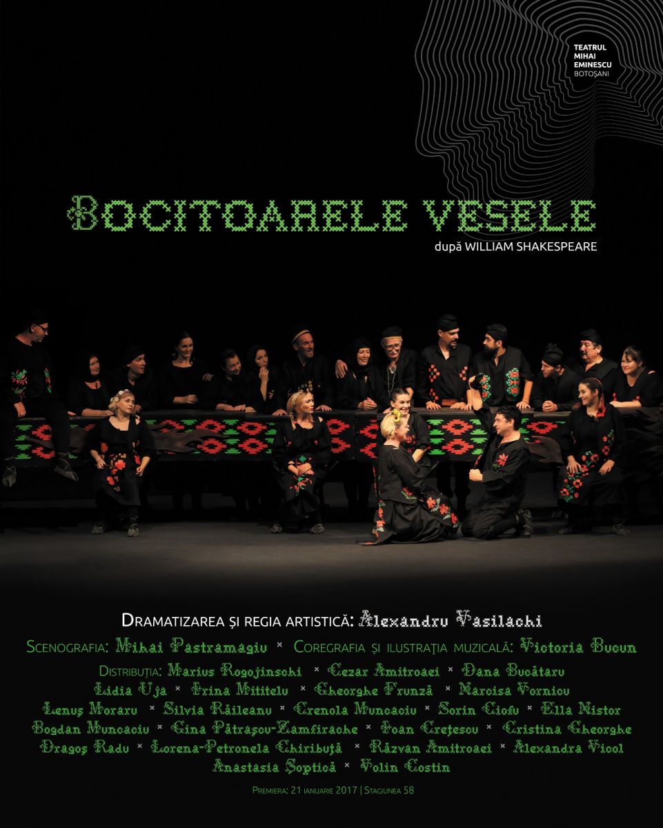 Teatrul „Mihai Eminescu” Botoșani vă invită în acest sfârșit de săptămână, în sala de la Casa Tineretului, atât sâmbătă, 10 decembrie, cât și duminică, 11 decembrie, de la ora 18.00, la spectacolul „Bocitoarele vesele” după William Shakespeare, în regia lui Alexandru Vasilachi.