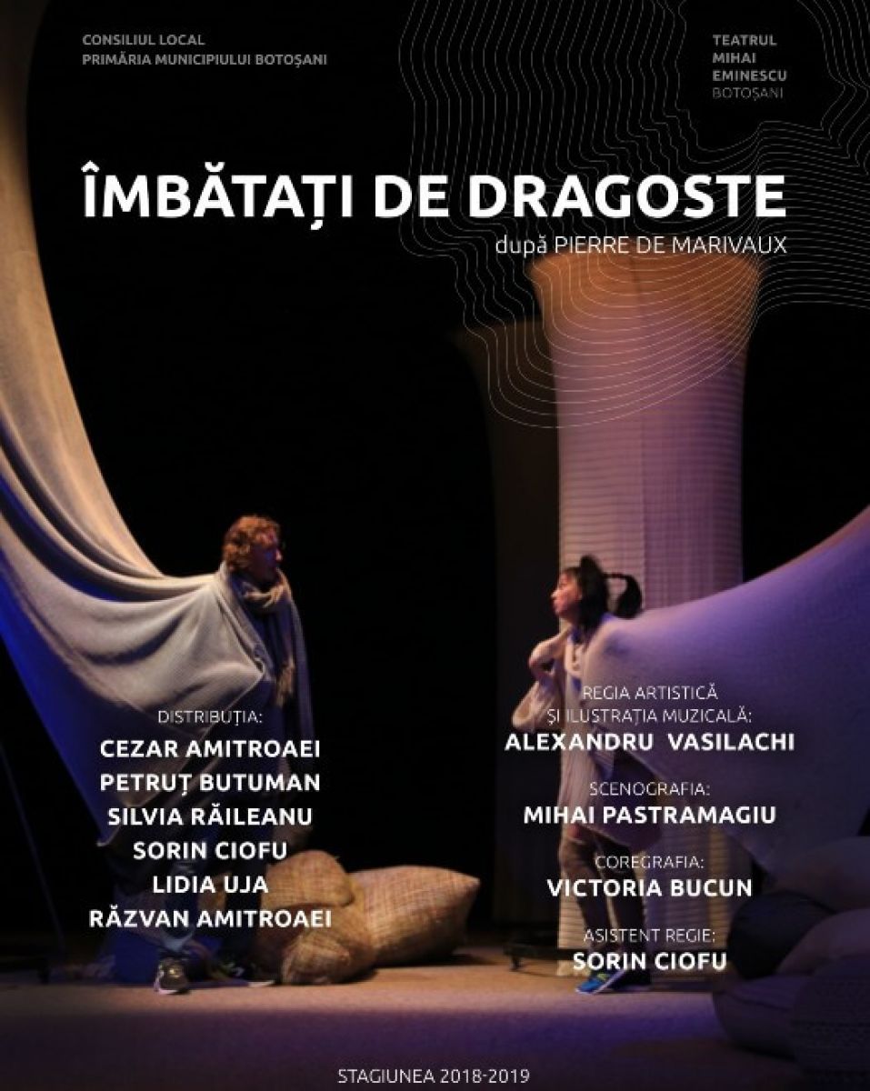 Teatrul ”Mihai Eminescu” Botoșani vă invită, în acest sfârșit de săptămână, la spectacolele „Întoarcerea de acasă”, de Ștefan Caraman, și „Îmbătați de dragoste”, după Pierre de Marivaux.