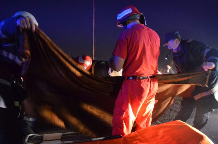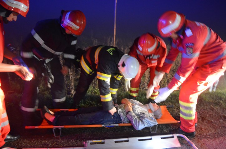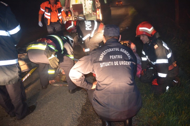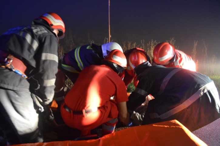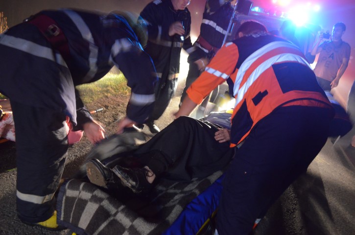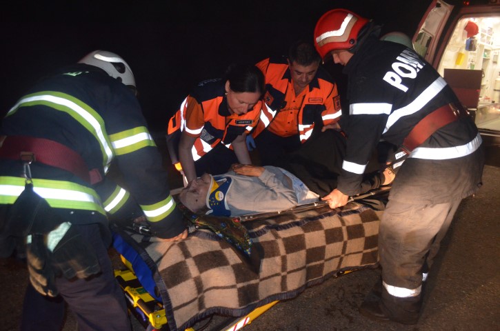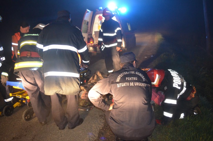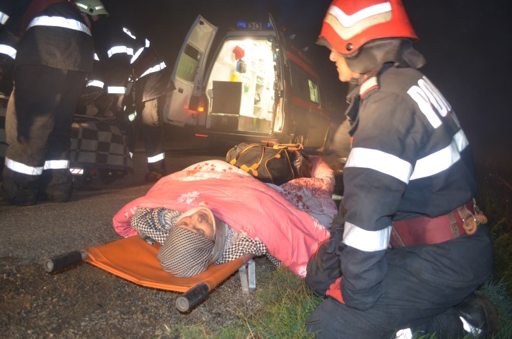 Două femei, ce păreau pensionare la prima vedere, se aflau întinse pe două tărgi, una lângă cealaltă, ambele pe drum. Aveau guler cervical, iar pompierii încercau să le îmbărbăteze, repetându-le aproape obsedant că salvarea este aproape şi că rudele lor, şoferul şi soţia acestuia, aflaţi pe locurile din faţă, sunt bine. În realitate însă conducătorul auto este grav rănit, automobilul având parbrizul ţăndări şi mai având doar unul dintre cele patru geamuri. În jurul orei 23:00 femeile au fost preluate pe rând de un echipaj EPA şi de o ambulanţă. La faţa locului a ajuns şi un echipaj de poliţie. În drumul spre Botoşani, BMW-ul cu numere de Braşov ar fi încercat să depăşească un autocar de la RVG, însă şoferul ar fi pierdut controlul volanului şi a ieşit de pe drum, ajungând pe câmp. (S.B.,G.E.)