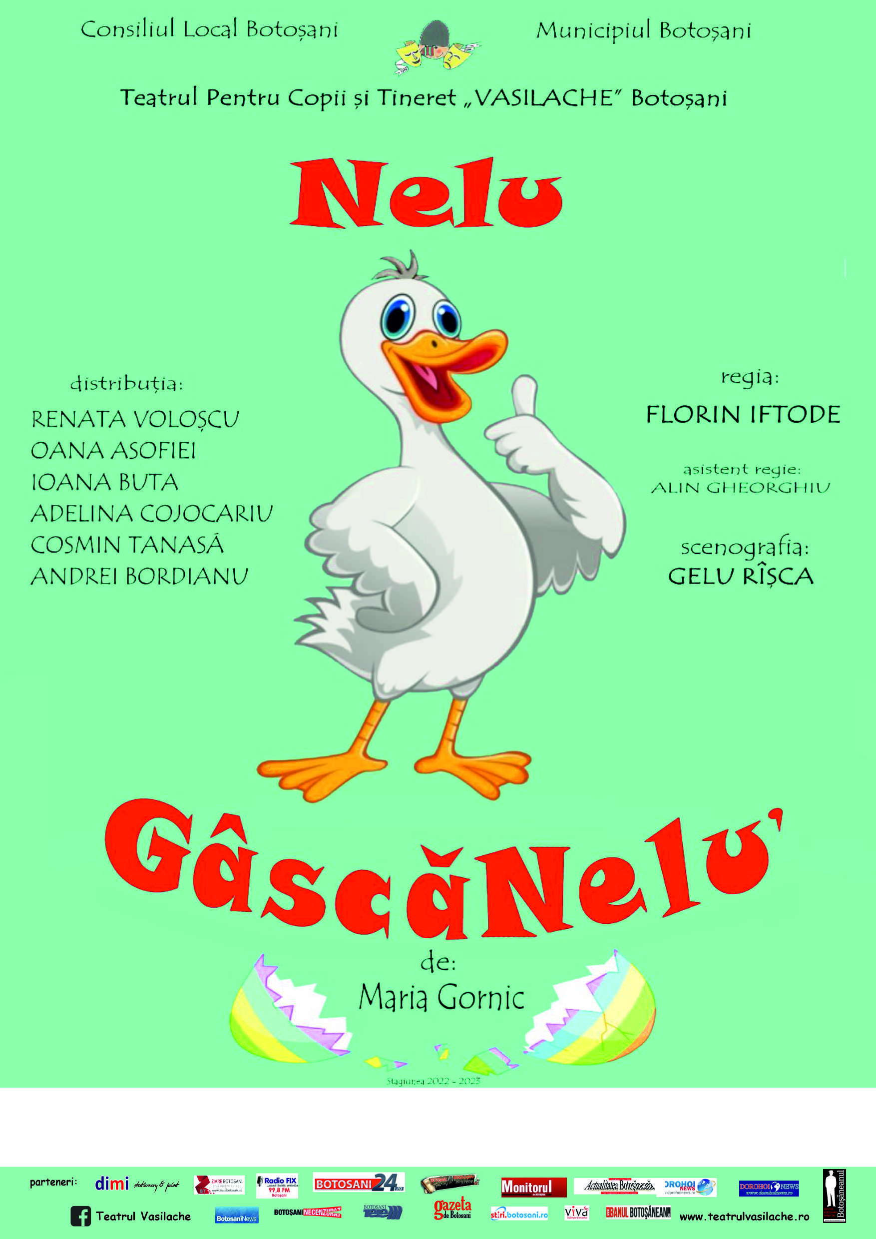 Regia spectacolului Nelu GâscăNeluʼ este semnată de Florin Iftode, autor text Maria Gornic, muzica Kevin MacLeod, asistent regie Alin Gheorghiu, iar scenografia este realizată de Gelu Rîşca.