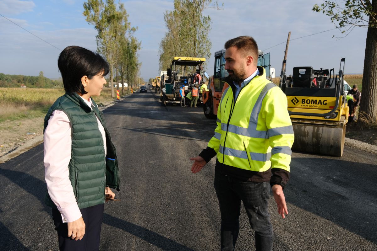 Președintele Consiliului Județean, Doina Federovici, vicepreședintele Dorin Birta și directorul Direcției Județene de Drumuri și Poduri, Cătălin Gheorghian, au inspectat lucrările efectuate pe cele trei loturi.