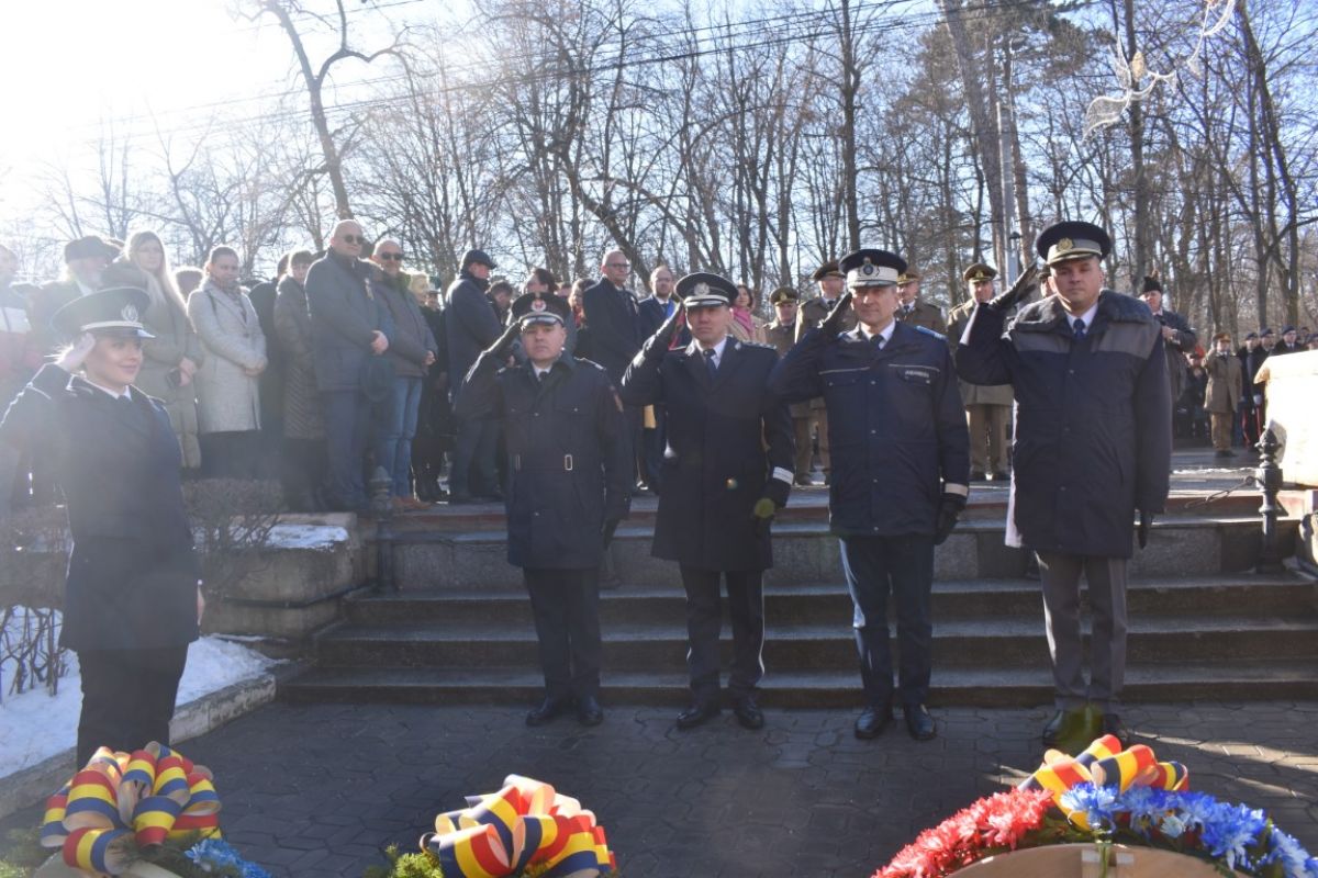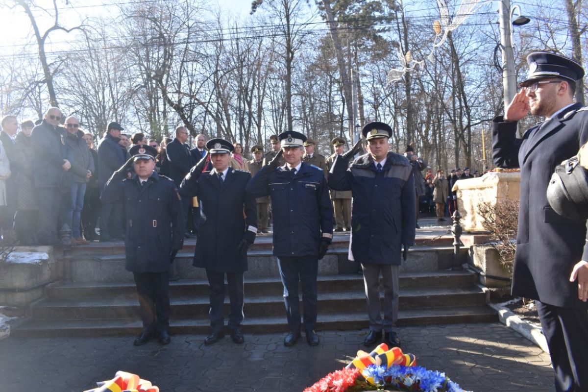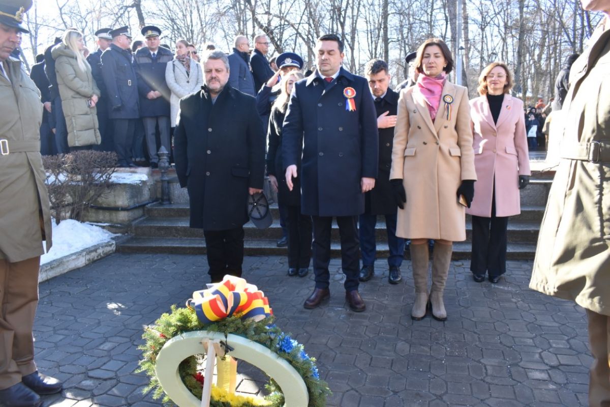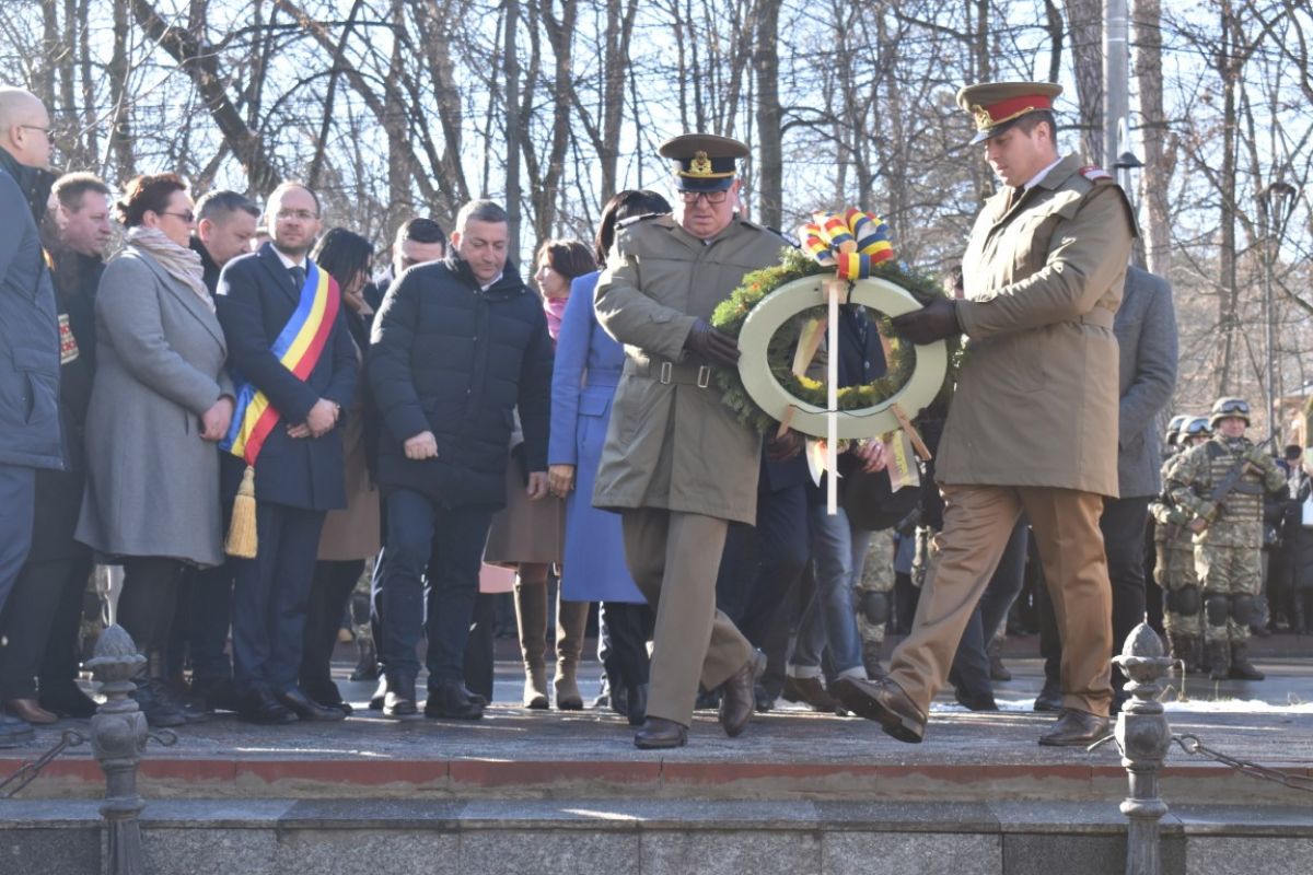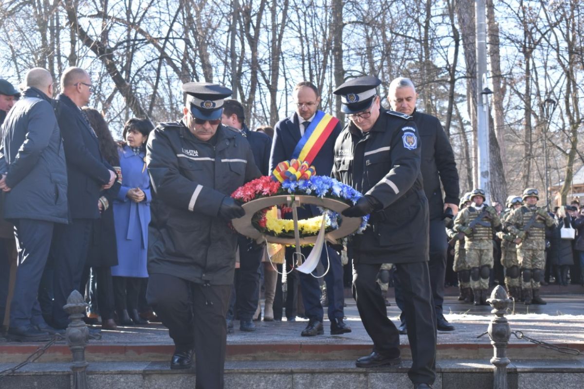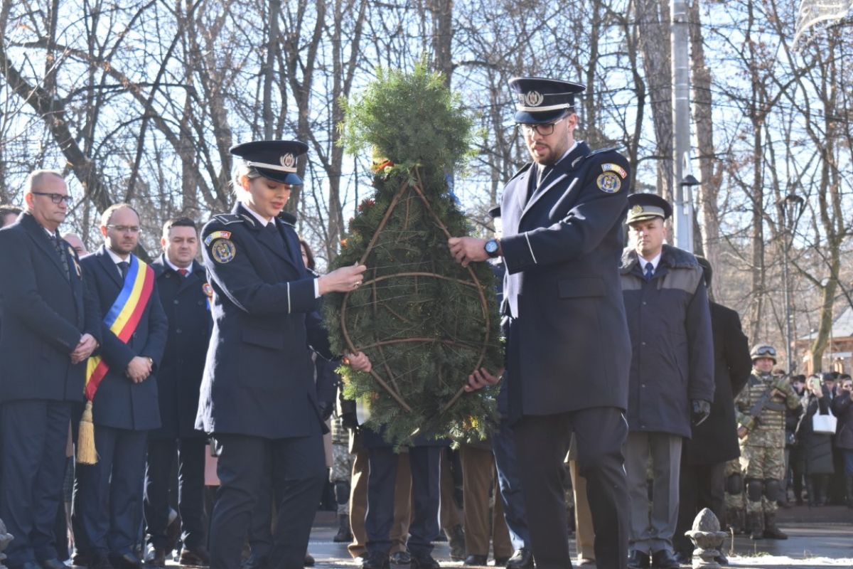 Coroanele de flori au fost depuse de instituțiile reprezentative ale județului și orașului, respectiv Prefectura, Primăria și Consiliul Local, Consiliul Județean precum și structurile Ministerului Afacerilor Interne (MAI) care au avut calitatea de organizatori.