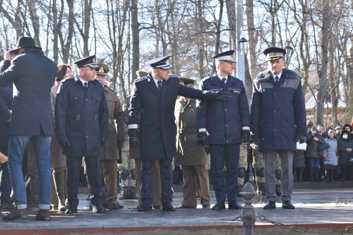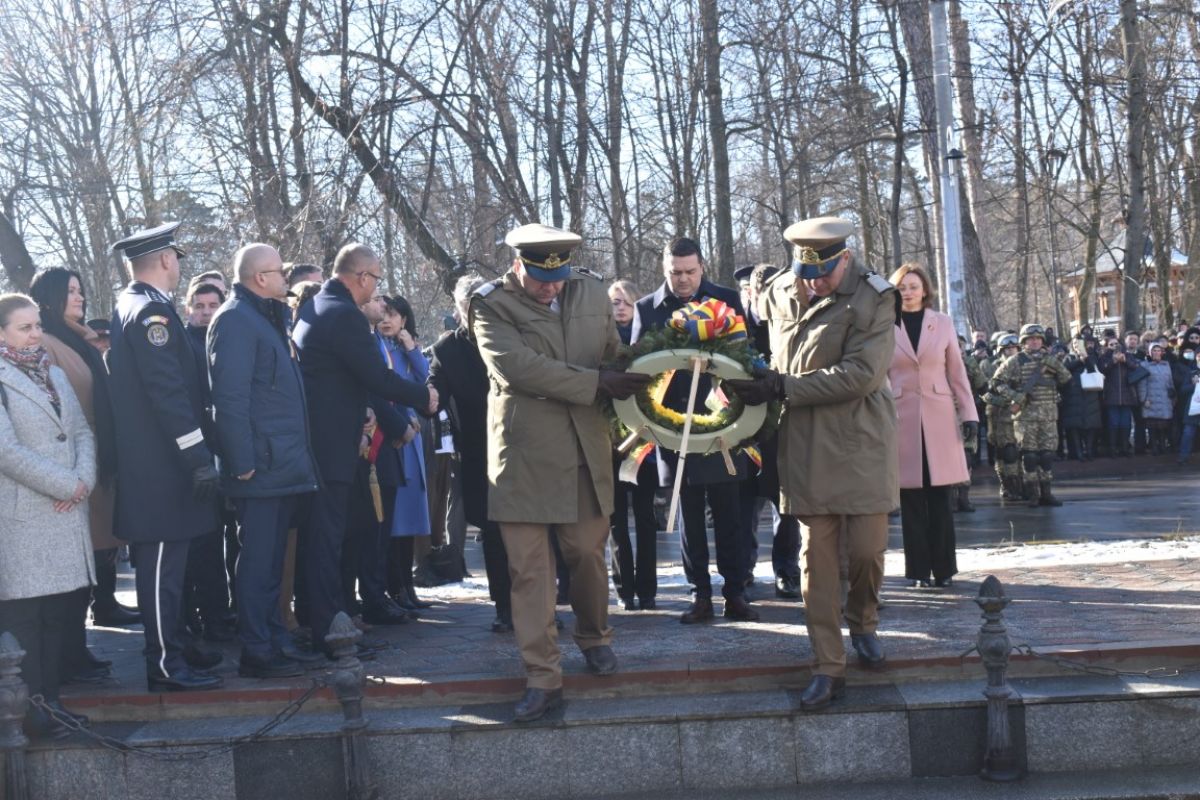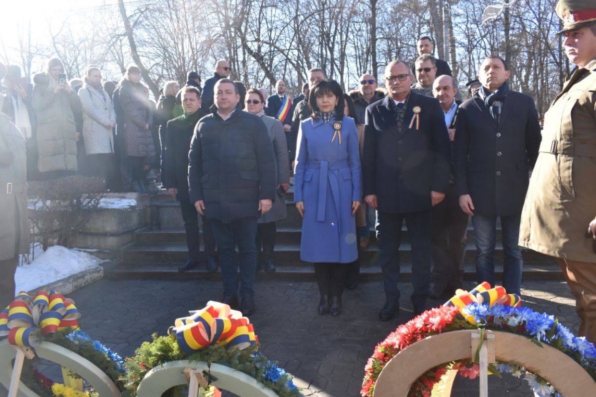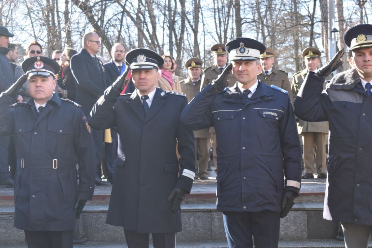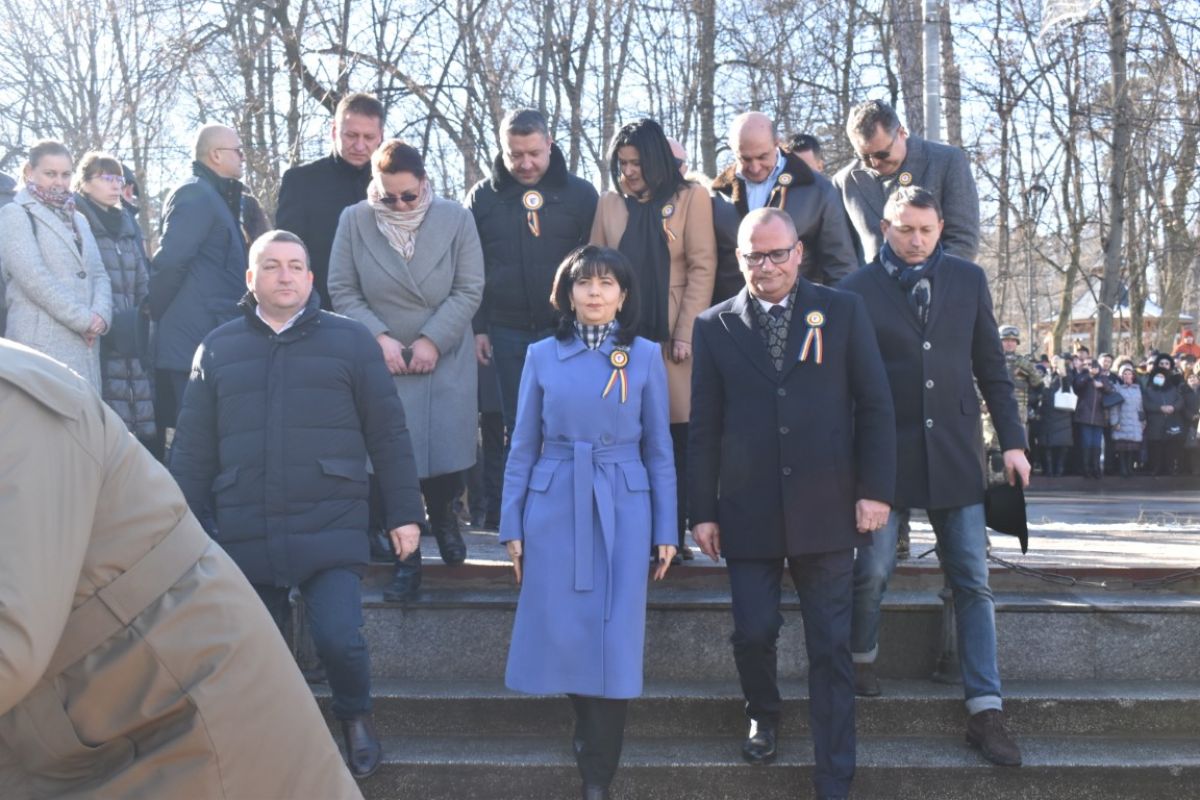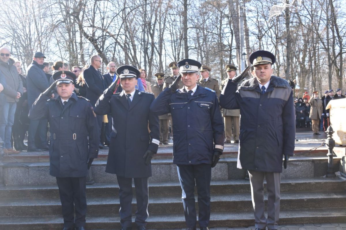 Coroanele de flori au fost depuse de instituțiile reprezentative ale județului și orașului, respectiv Prefectura, Primăria și Consiliul Local, Consiliul Județean precum și structurile Ministerului Afacerilor Interne (MAI) care au avut calitatea de organizatori.