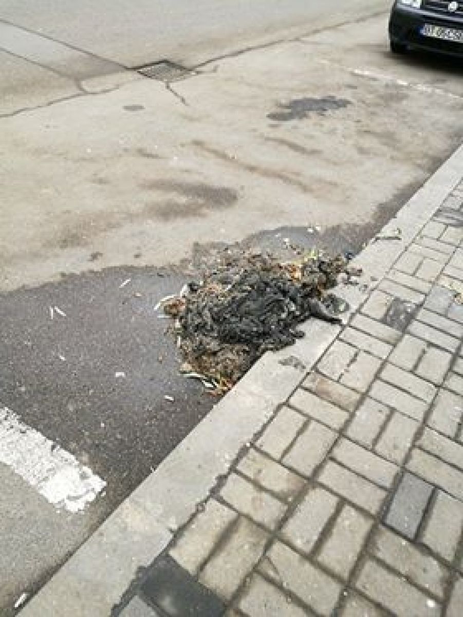 Provine de la niște resturi care au fost scoase dintr-o conductă subterană de canalizare și care au fost cumva ”uitate” la marginea bordurii.