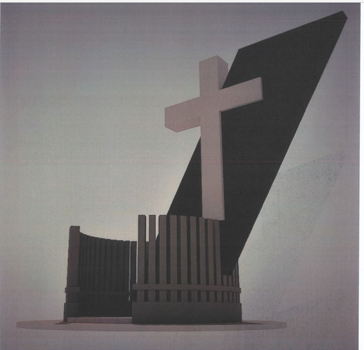 Se va amplasa pe trei plăci circulare, concentrice. Una din plăci va avea o rază de trei metri. Din centrul cercurilor va pleca o diafragmă înclinată din beton armat, diafragma fiind placată cu granit negru peste care se va fixa o cruce latină din marmură albă, cu înălțimea de trei metri.