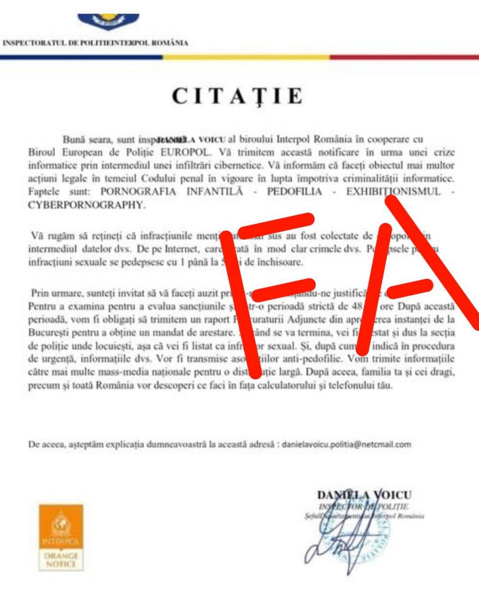 „În situația în care primiți astfel de email-uri, nesolicitate, vă recomandăm să nu răspundeți, să nu accesați eventualele linkuri sau atașamente și să vă adresați celei mai apropiate unități de poliție sau online, pe portalul de petiții al Poliției Române”,
