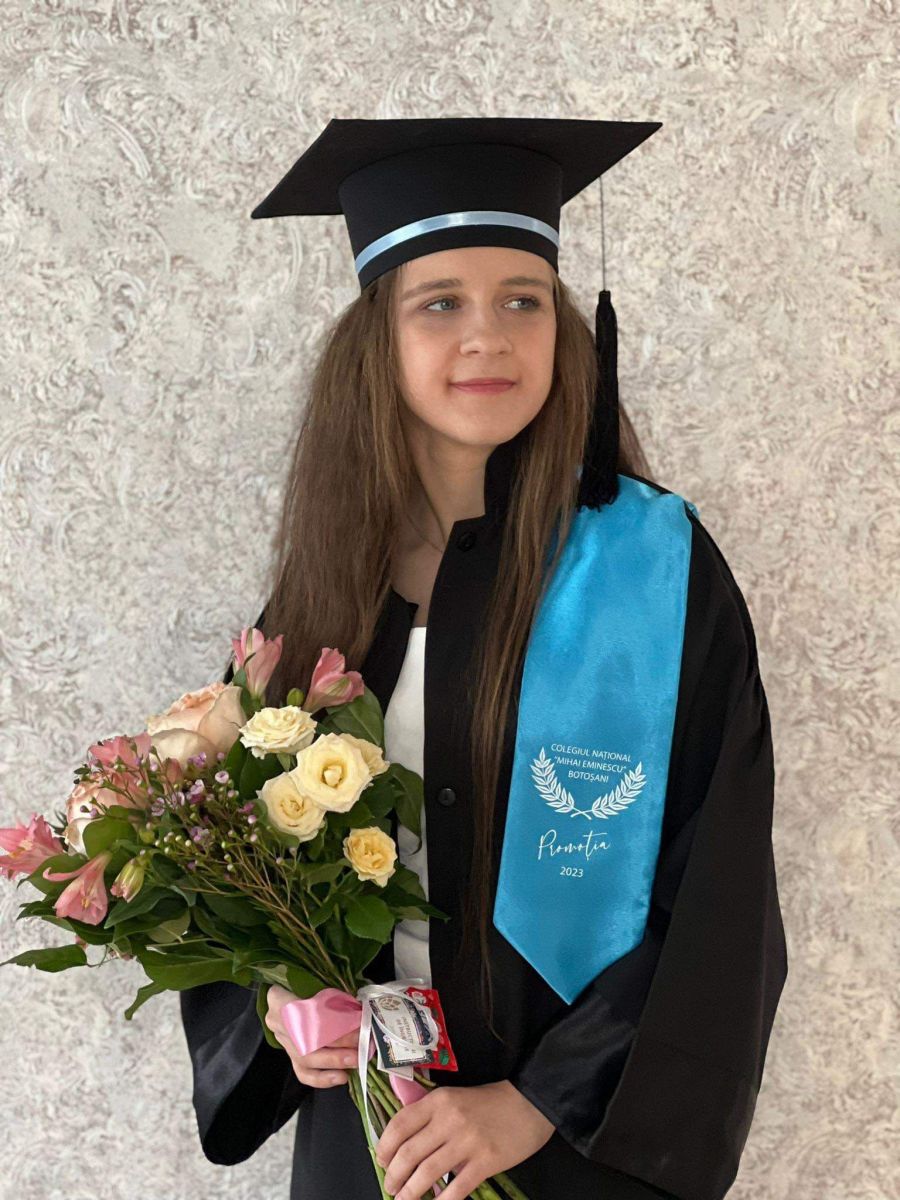 Ea este Mera I Andra, absolventă a Colegiului Național „Mihai Eminescu”.