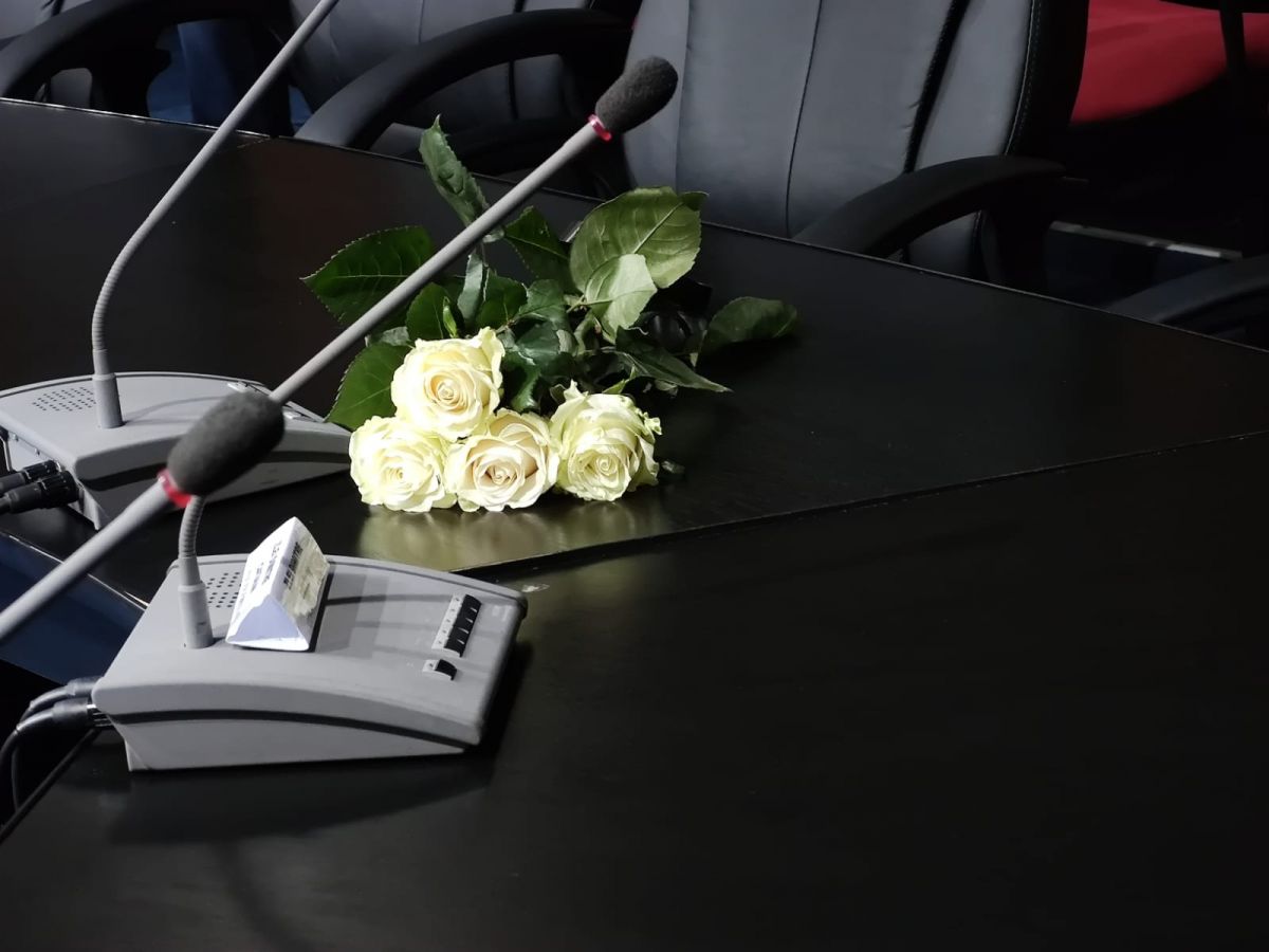 Înainte să înceapă ședința. Vicepreședintele social democrat al CJ, Dorin Birta a fost cel care a ajuns la locul care era ocupat la masa dezbaterilor de tânărul consilier pentru a așeza patru trandafiri albi.