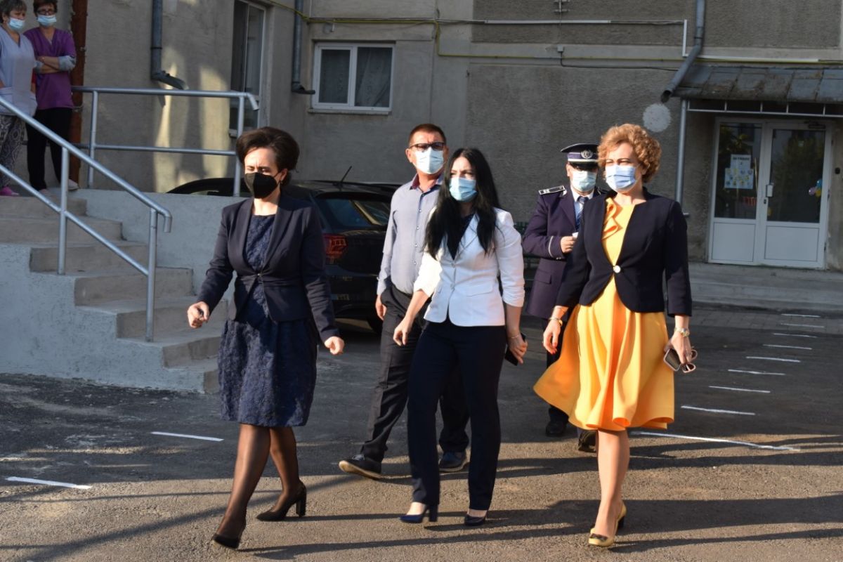Ada Alexandrina Macovei a venit însoțită de directorul Direcției de Sănătate Publică (DSP), Monica Adăscăliței și doi inspectori care provin din această unitate de învățământ.
