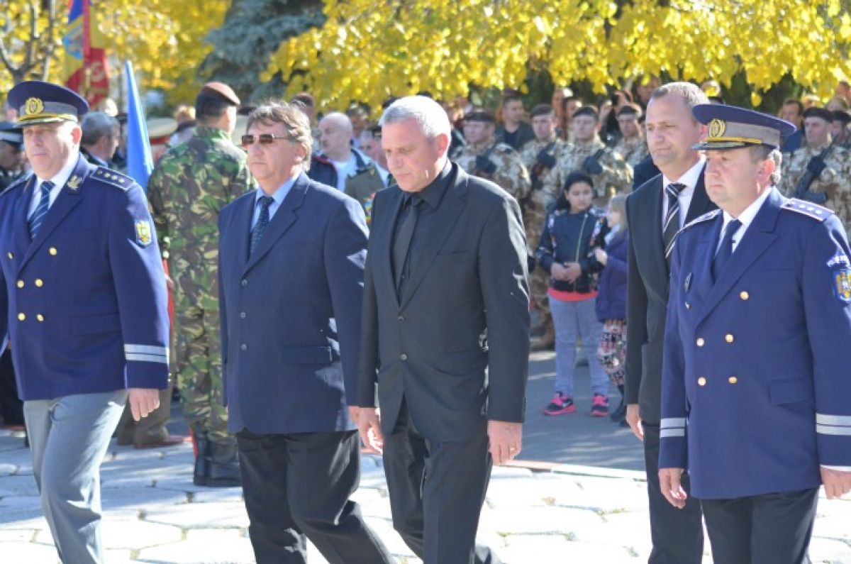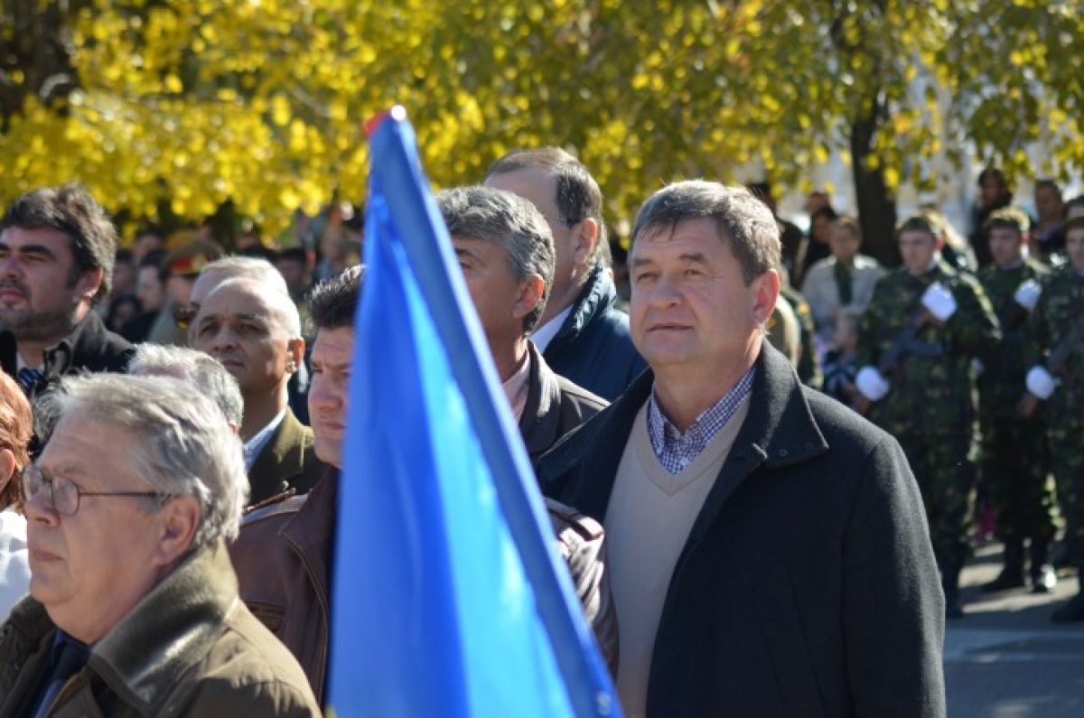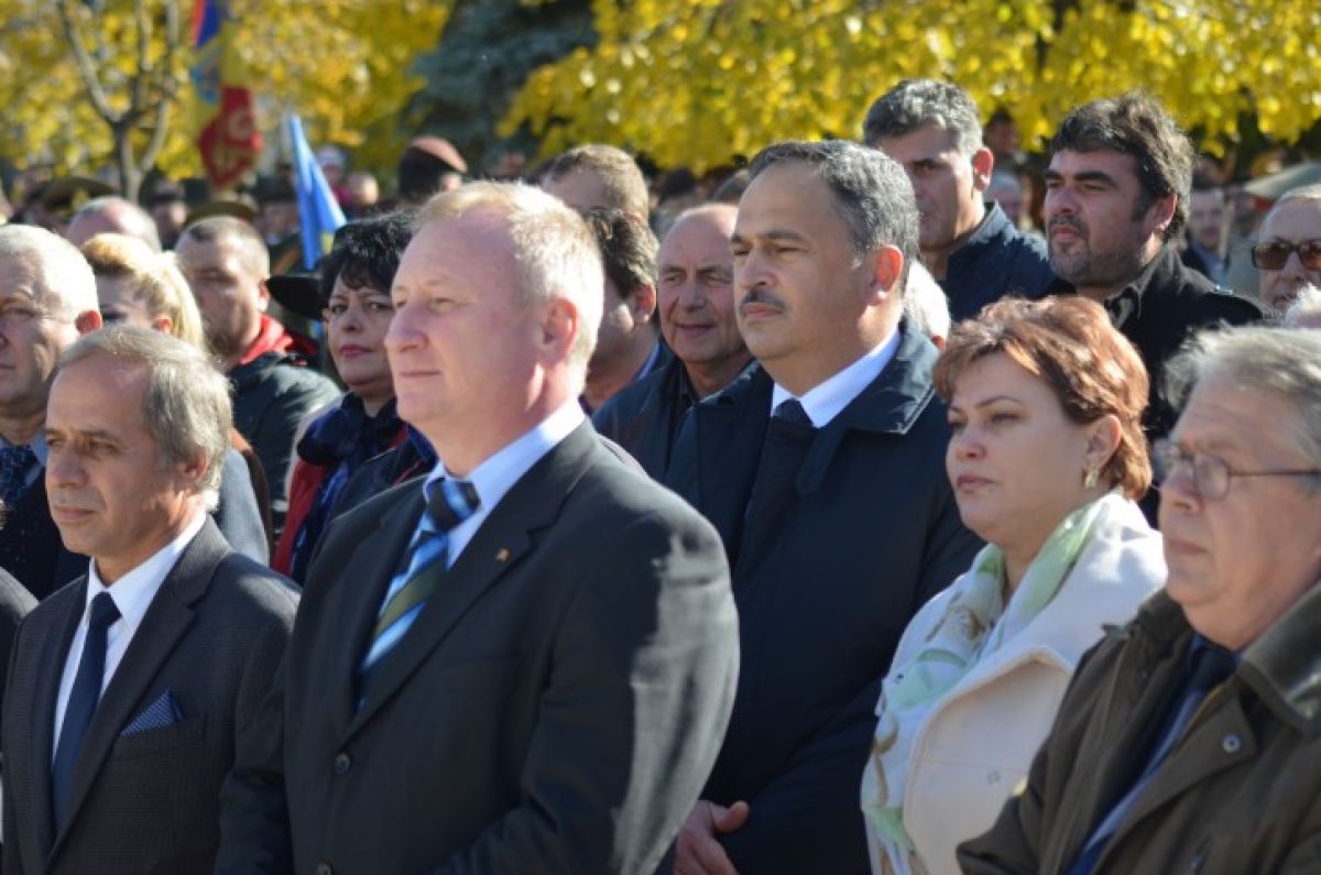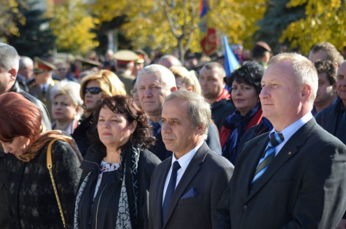 Anul trecut, manifestațiile au fost organizate la minus grade Celsius, anul acesta, Armata a sărbătorit într-o frumoasă zi de toamnă, cea mai lungă din an. Oficialitățile orașului s-au adunat în Piața Revoluției, înainte de a porni în coloană oficială spre Monumentul Eroilor din Cuza Vodă. Au venit grupați, pe partide politice și așa au rămas: rupți în două. Liberalii, undeva în spațiul din fața Primăriei, social democrații și cei din partidele cu care sunt în alianță, pe esplanada Palatului Administrativ. Când s-a apropiat ora la care oficialitățile ar fi trebuit ”să se pună în mișcare”, prefectul Costică Macaleți a strigat spre liberali pentru a se alătura într-un singur grup. Și-așa au făcut.