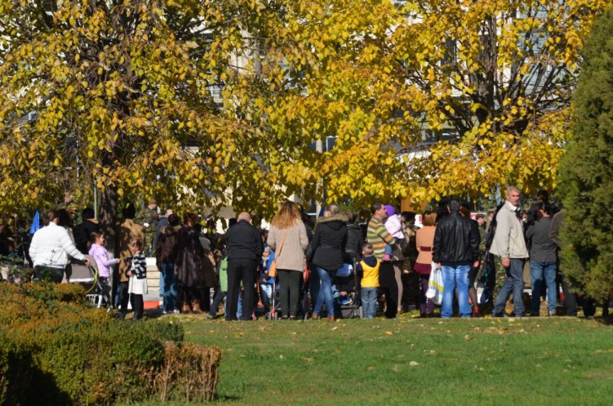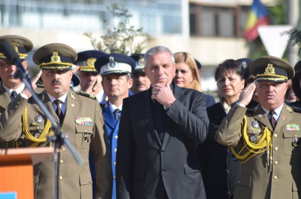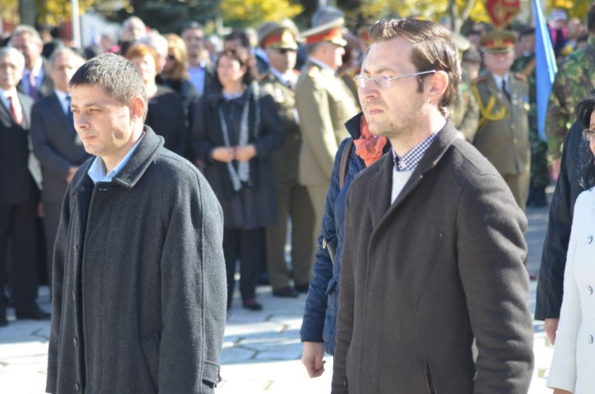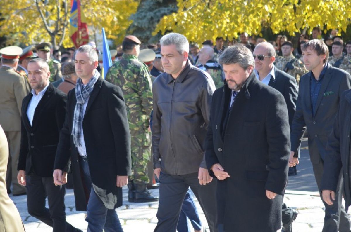 Anul trecut, manifestațiile au fost organizate la minus grade Celsius, anul acesta, Armata a sărbătorit într-o frumoasă zi de toamnă, cea mai lungă din an. Oficialitățile orașului s-au adunat în Piața Revoluției, înainte de a porni în coloană oficială spre Monumentul Eroilor din Cuza Vodă. Au venit grupați, pe partide politice și așa au rămas: rupți în două. Liberalii, undeva în spațiul din fața Primăriei, social democrații și cei din partidele cu care sunt în alianță, pe esplanada Palatului Administrativ. Când s-a apropiat ora la care oficialitățile ar fi trebuit ”să se pună în mișcare”, prefectul Costică Macaleți a strigat spre liberali pentru a se alătura într-un singur grup. Și-așa au făcut.