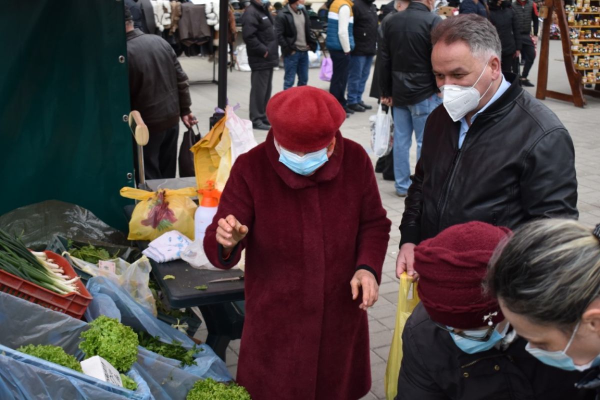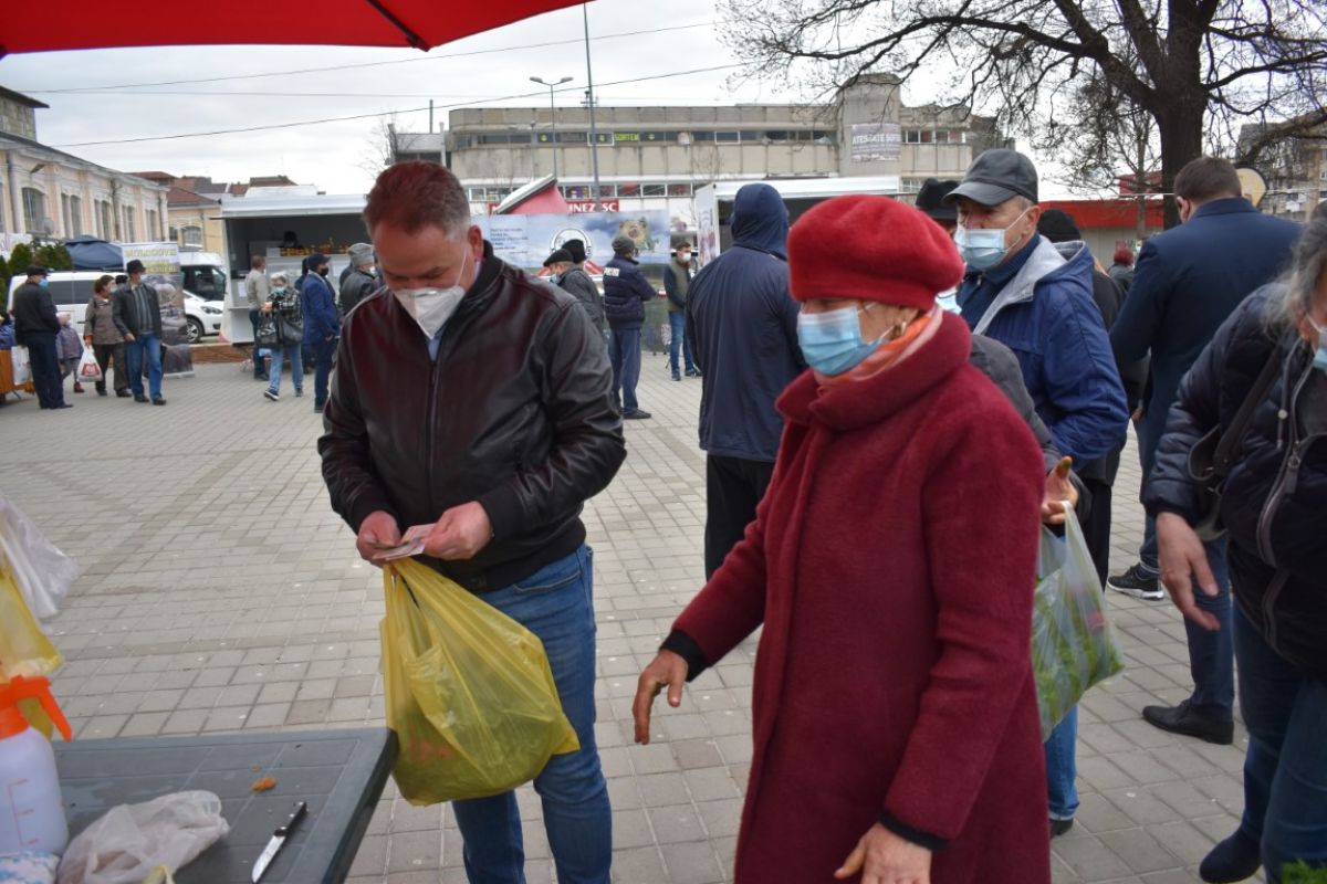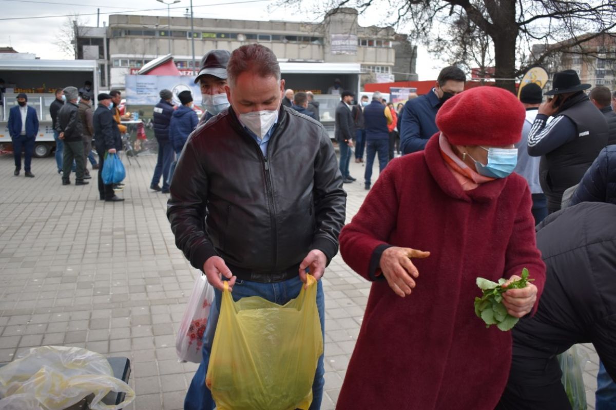 Prefectul Dan Nechifor a cumpărat întâi caș iar mai apoi s-a îndreptat și spre taraba de verdețuri pentru a avea la masă și o salată gustoasă.