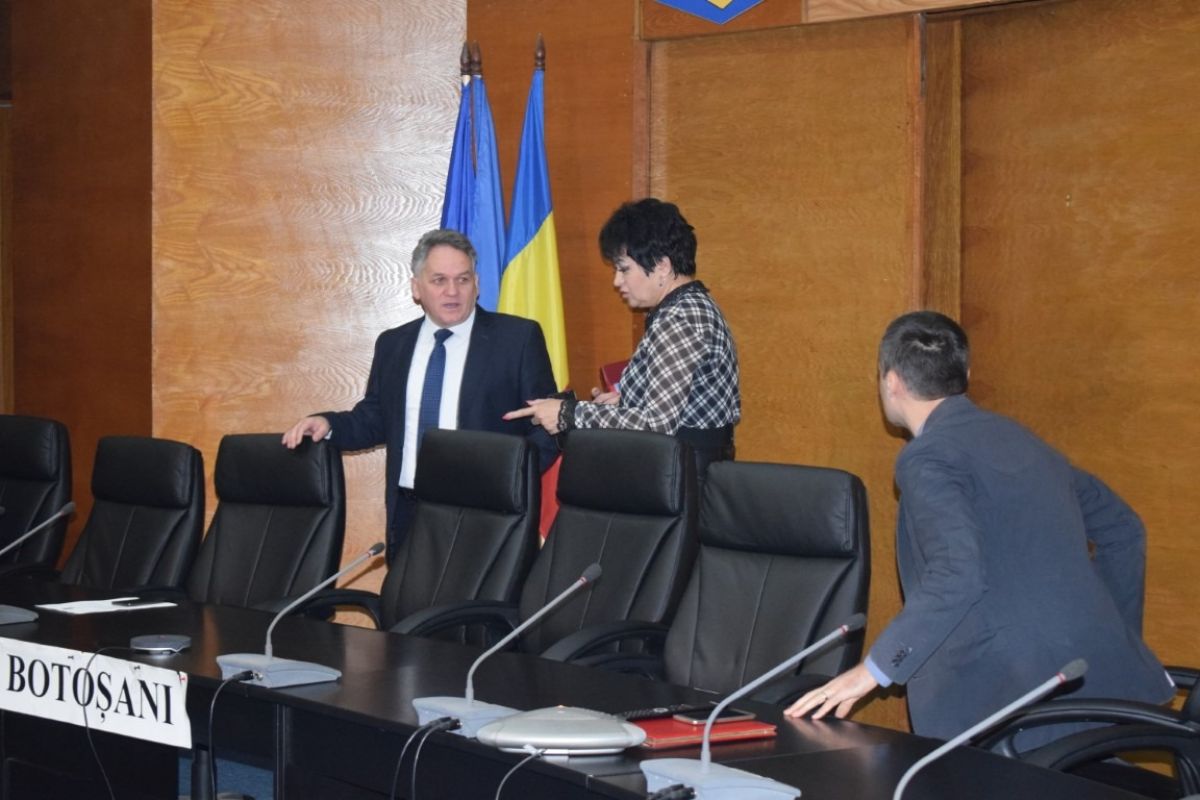 La Botoșani, sala Nicolae Iorga zumzăie de voci scăzute. Directorii discută între ei sau butonează telefoanele. În sală, spre deosebire de ziua în care a depus jurământul Alexandru Colbu, se află și mai mulți liberali.