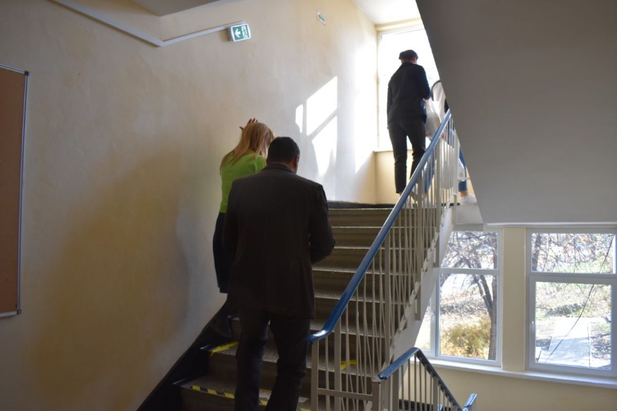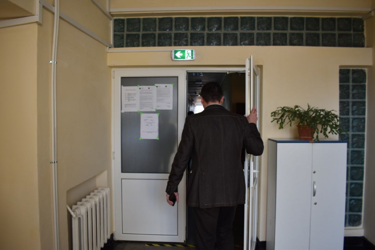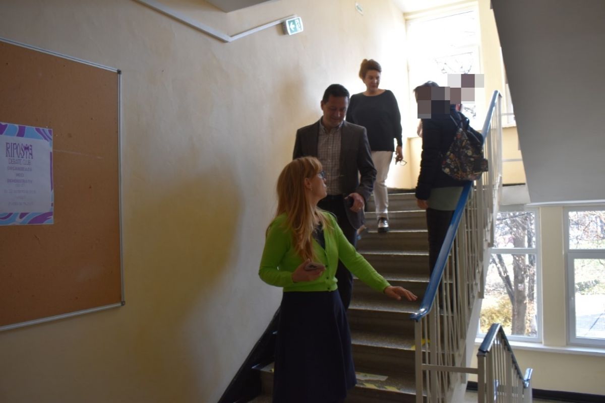 A fost întâmpinat de prof. Mirela Sănduleanu, directorul Liceului Pedagogic, și a intrat în clădirea în care funcționează internatul, dar și câteva clase din ciclul primar. A intrat în clase unde a salutat copiii, a dorit să vadă băile și gradul de igienizare, camerele în care sunt cazați copiii, dar și cantina liceului unde zilnic servesc masa în jur de 300 de copii.