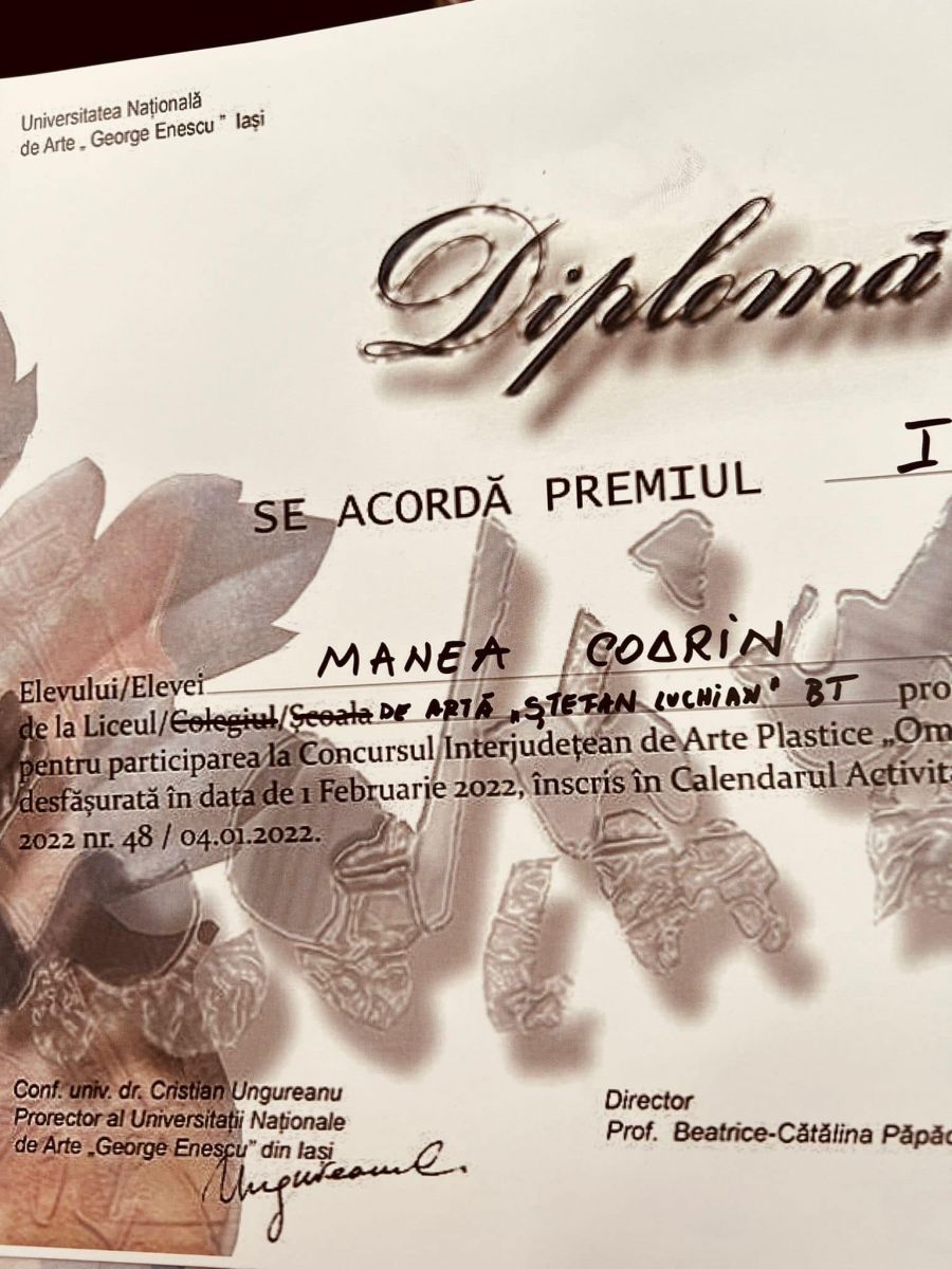 Diploma i-au semnat-o prof.univ.dr. Cristian Ungureanu, prorector al Universității Naționale de Arte ”George Enescu” Iași, prof. Beatrice Păpădie, director al liceului menționat și prof. Alina Muntean, coordonator al proiectului.
