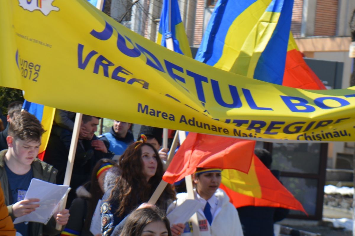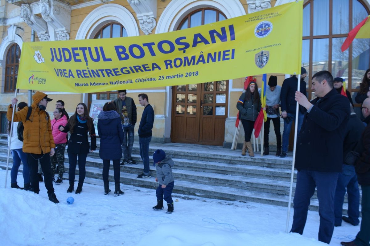 Cu trei zile înaintea împlinirii a 100 de ani de la unirea Basarabiei cu România la Botoşani a avut loc un marş de susţinere a reîntregirii ţării. Undeva între 50 şi 100 de botoşăneni, înarmaţi cu steaguri şi cu bentiţe tricolore, s-au strâns sâmbătă la amiază în faţa Muzeului Judeţean şi apoi au colindat oraşul cântând „Deşteaptă-te române!” şi scandând lozinci unioniste.
